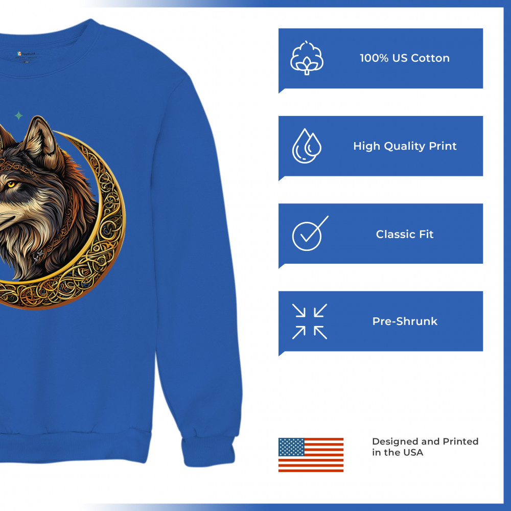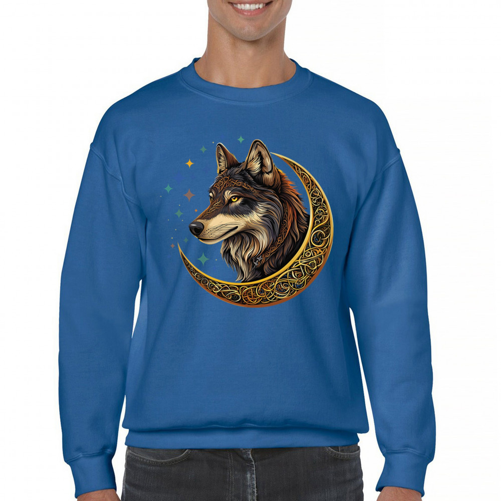 Celtic wolf design in a glowing crescent moon. Symbolizes loyalty, mysticism, and wild energy. Great for fantasy fans and spirit animal seekers.