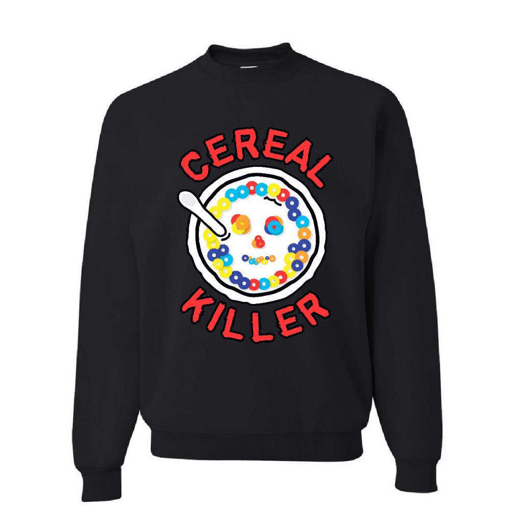 CEREAL KILLER sweatshirt funny breakfast morning meal serial killer sweater black