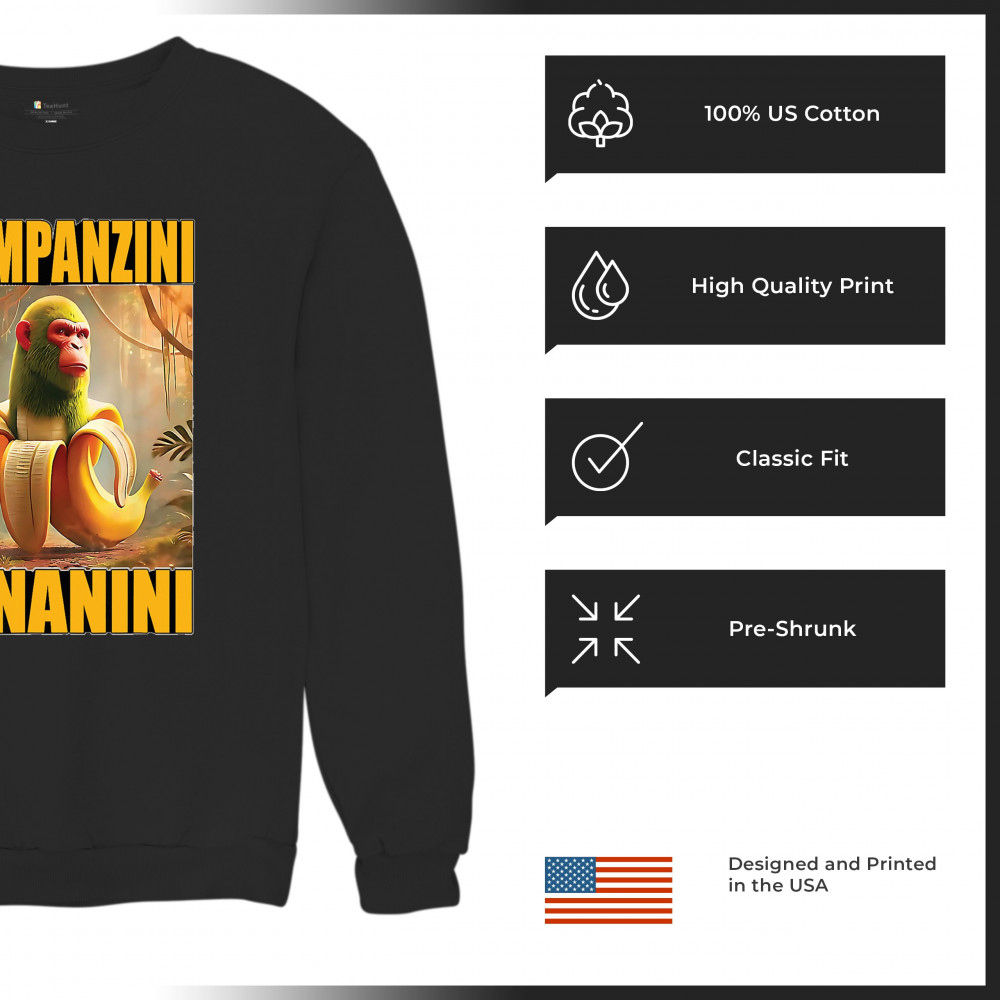 CHAMPANZINI BANANINI crewneck sweatshirt italian brainrot gen z alpha meme black
