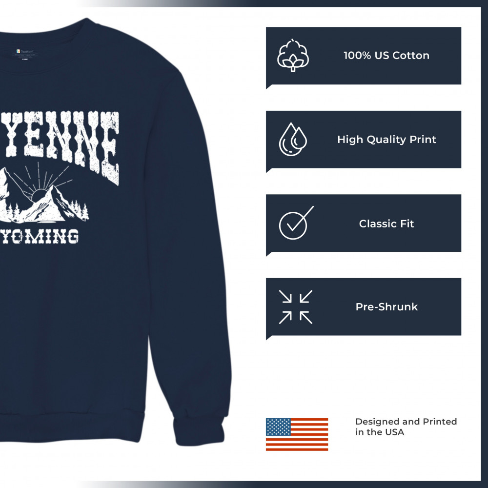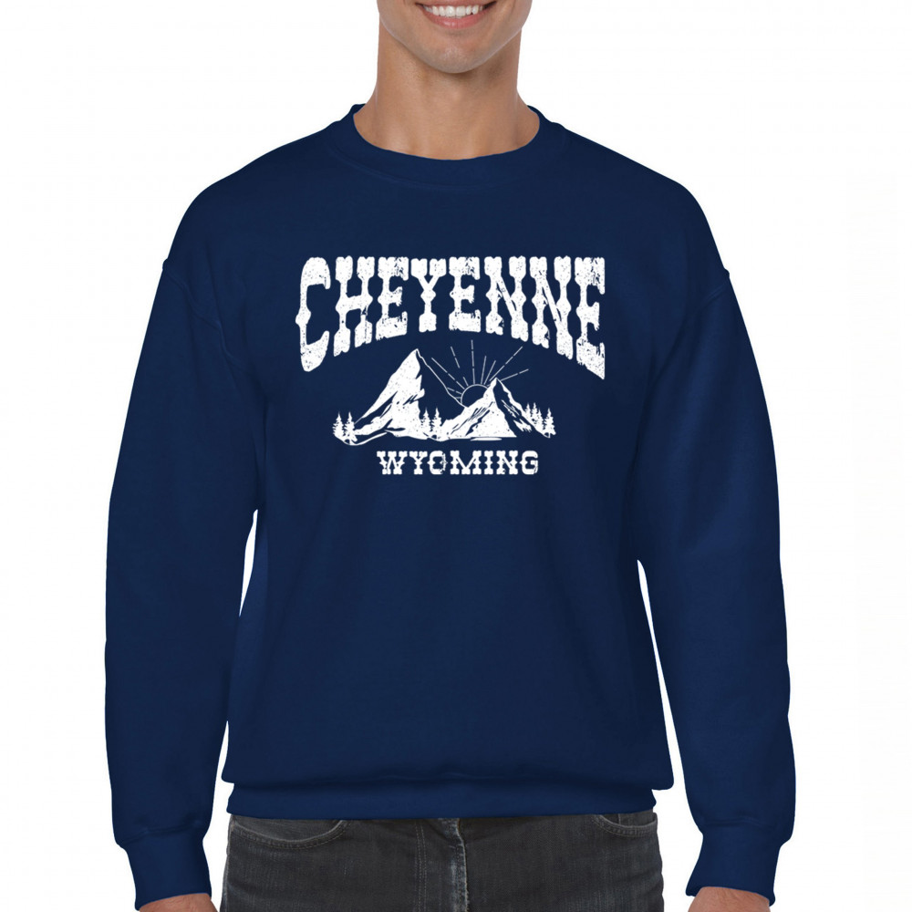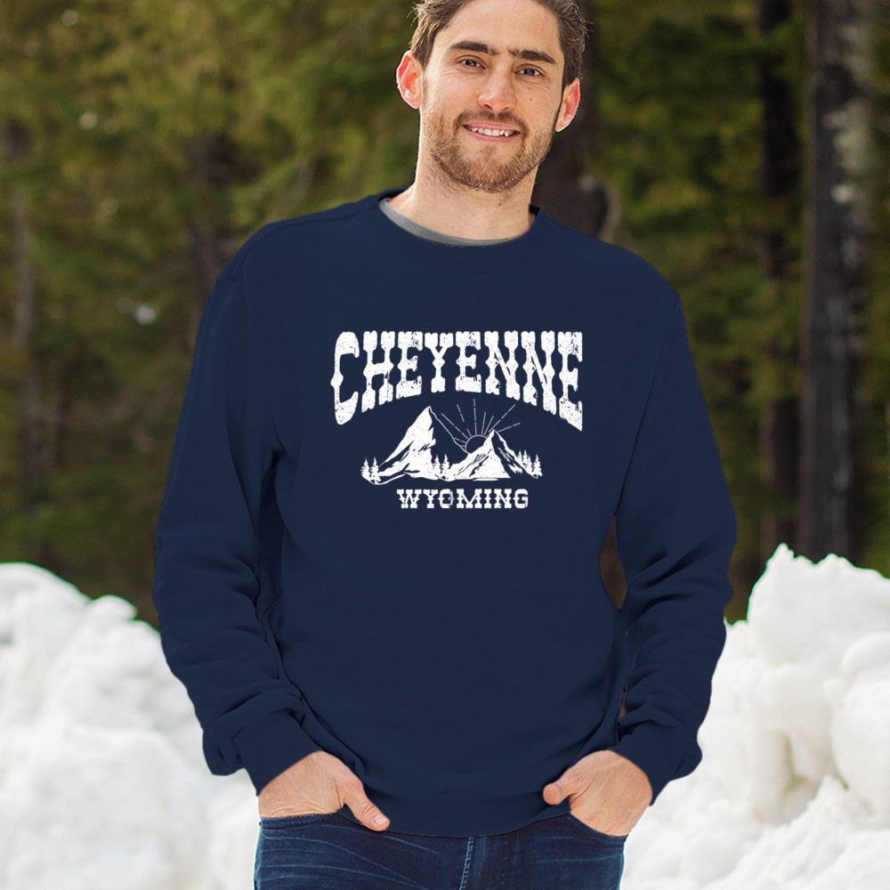 Vintage Cheyenne Wyoming design with mountain sunrise for outdoor lovers and locals. Perfect for travel, hiking, or Western pride.