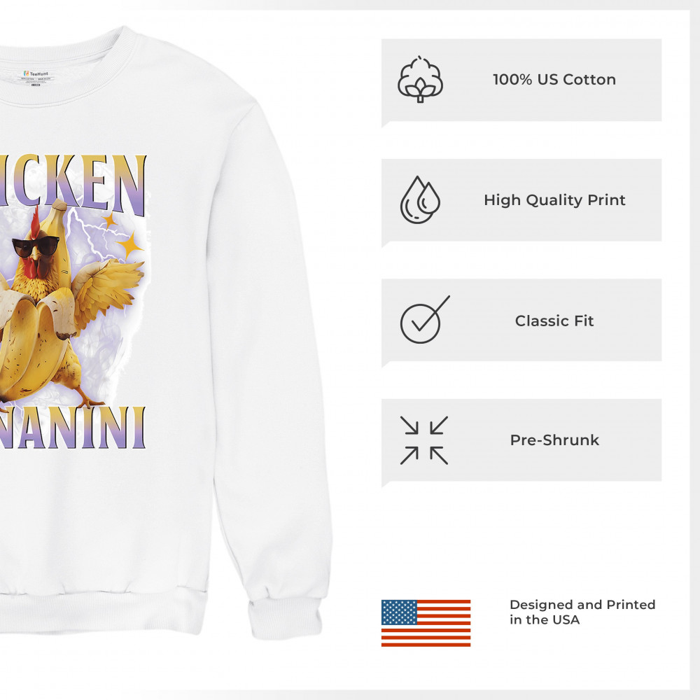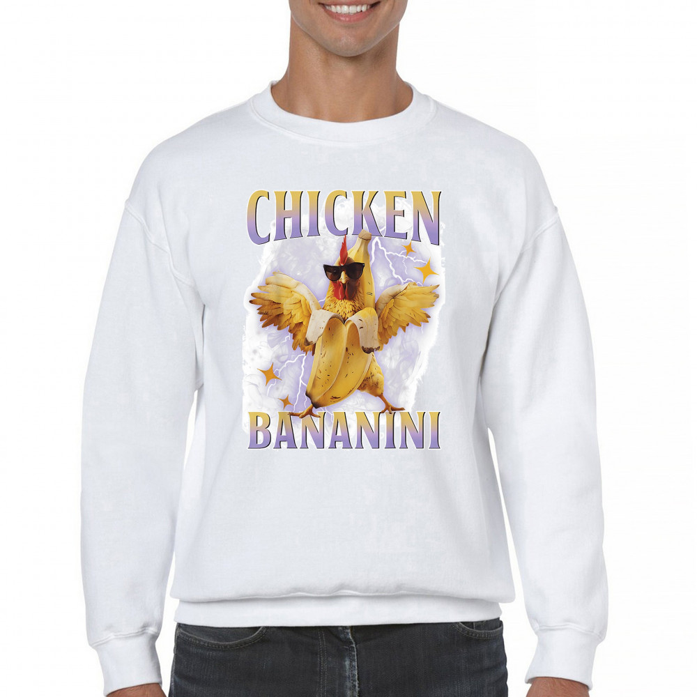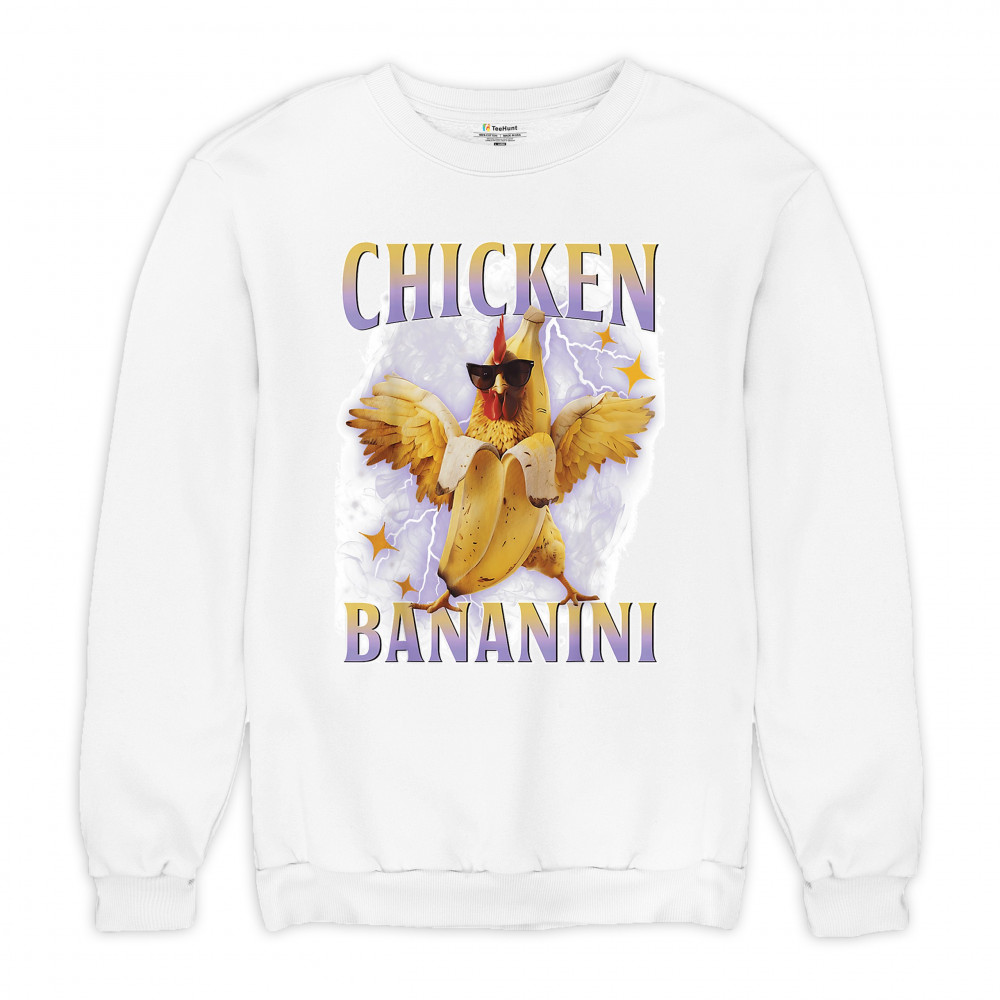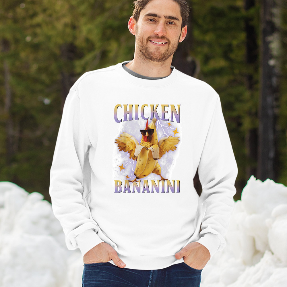 Chicken Bananini is meme absurdity with extra peel. Featuring a chicken emerging from a banana and rocking shades, this design blends cursed-core fashion, viral animal humor, Gen Z brainrot, and TikTok-style chaos. A must-have for fans of ironic mashups, surreal creatures, and internet-fueled nonsense.