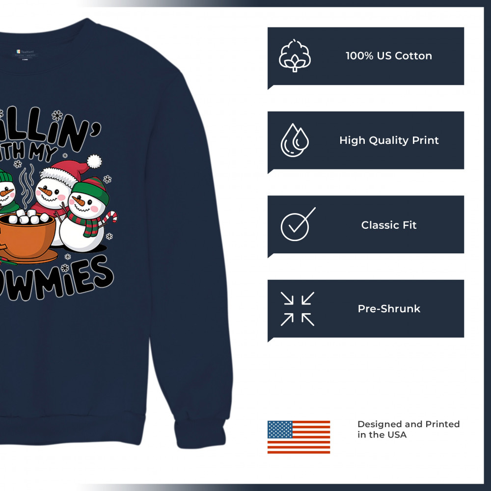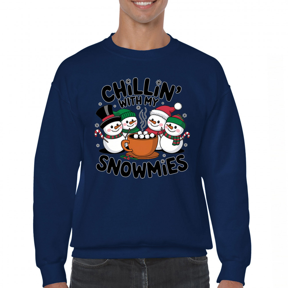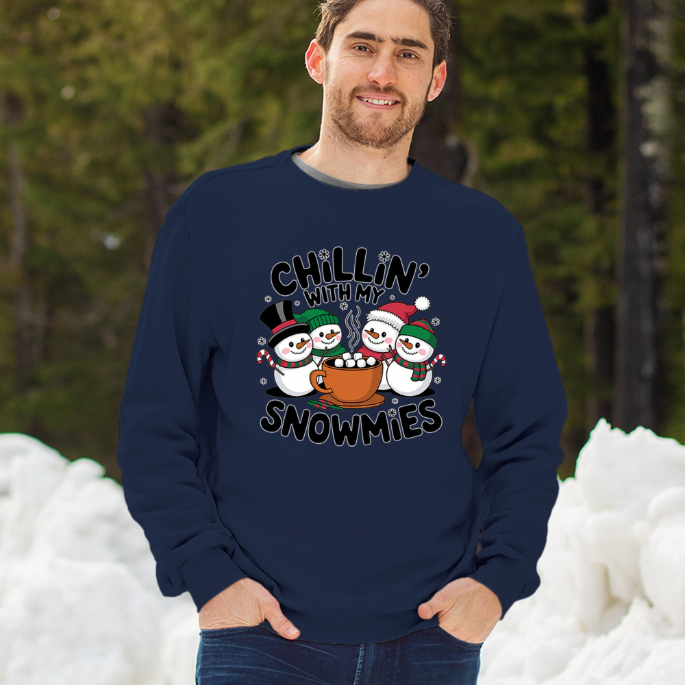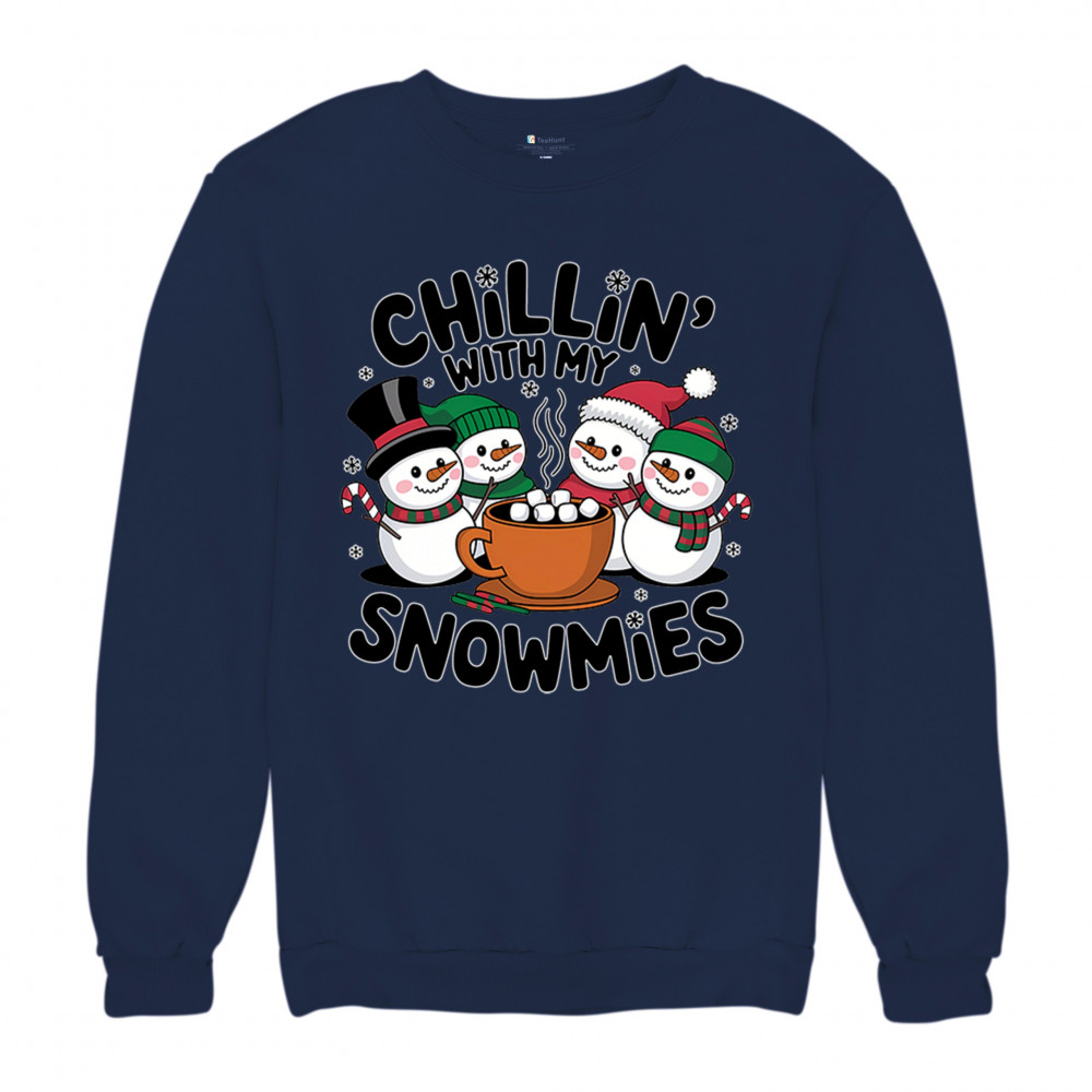 A cute and cheerful winter design showing happy snowmen sharing hot cocoa, perfect for Christmas gatherings, holiday events, seasonal photos, white-elephant gifting, festive family nights, winter celebrations, cozy weekend vibes, and fans of playful holiday humor. A fun graphic for anyone who loves bright and friendly Christmas styles.