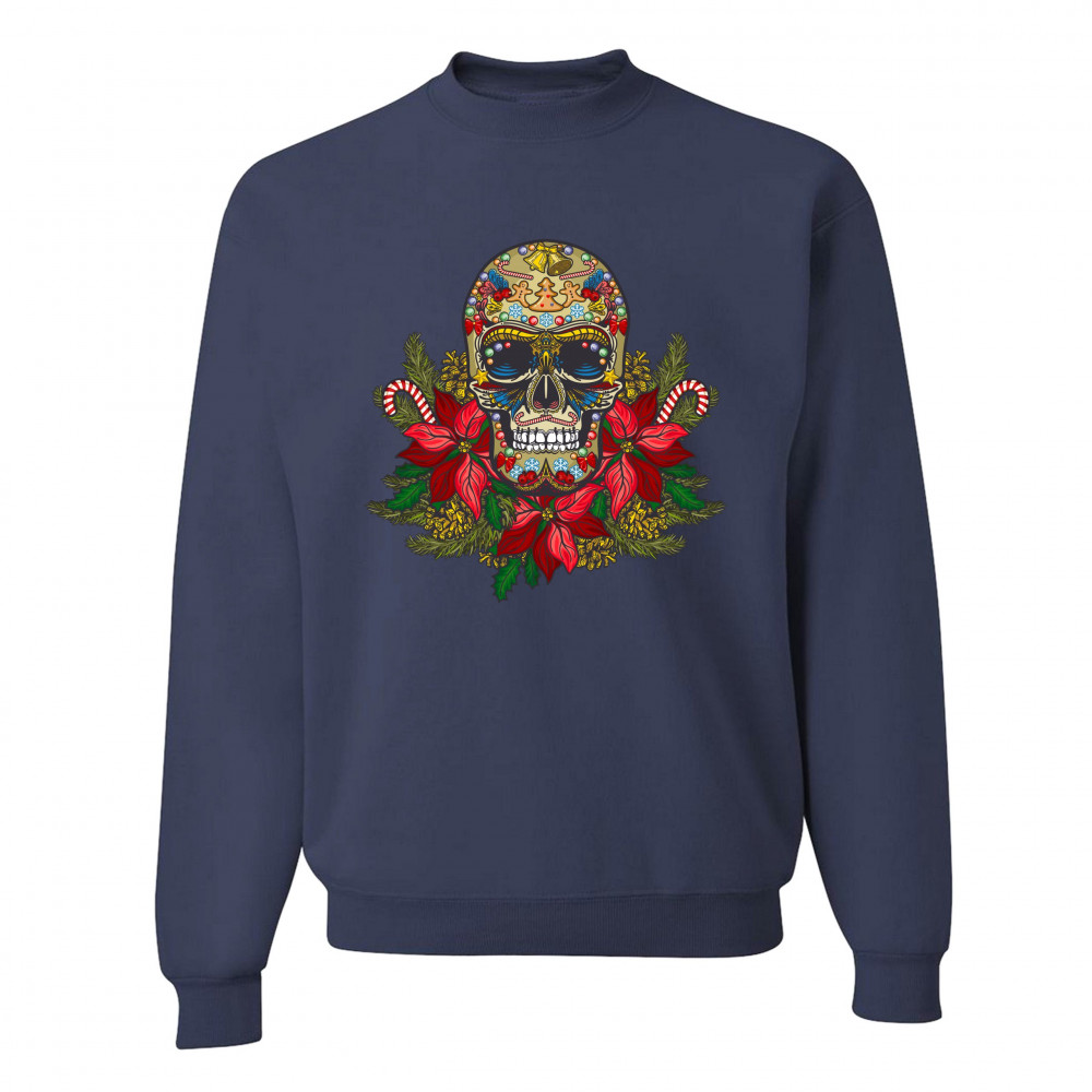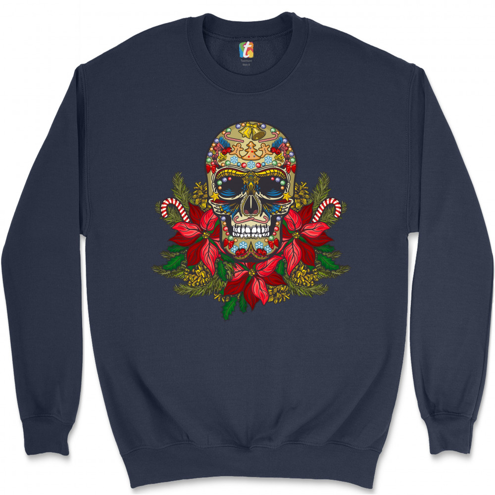 CHRISTMAS CALAVERA sweatshirt sugar skull holiday spirit mistletoe crewneck navy blue