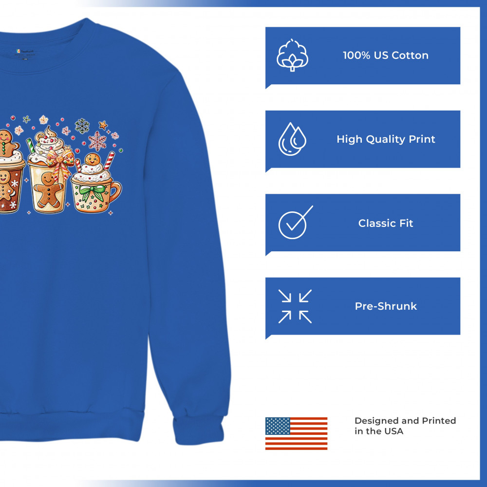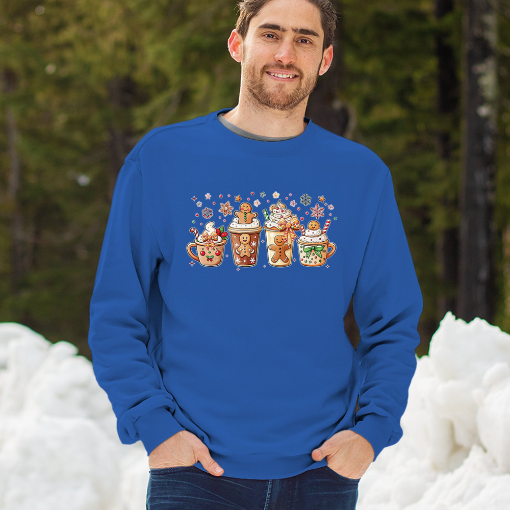 CHRISTMAS DRINKS crewneck sweatshirt cozy hot chocolate gingerbread sprinkles royal blue