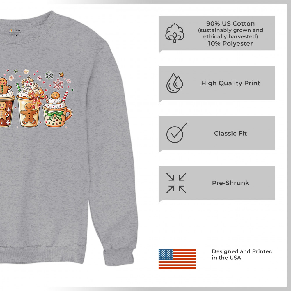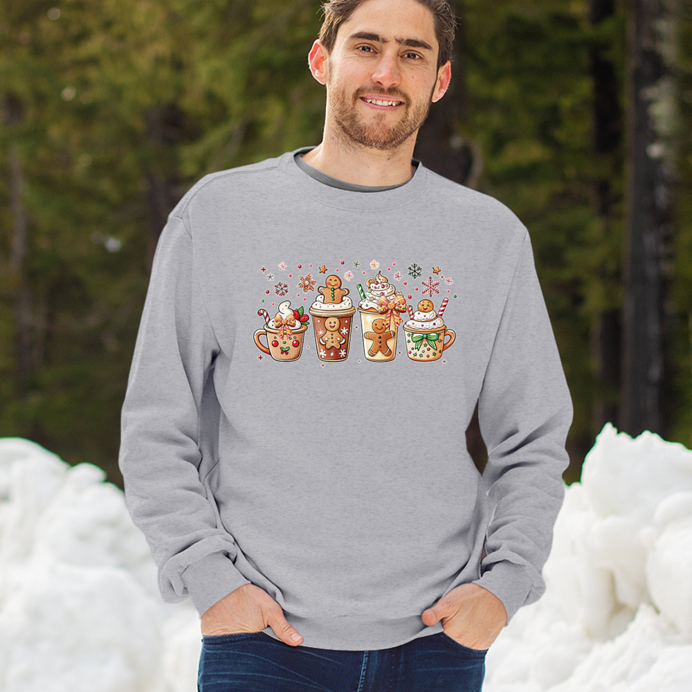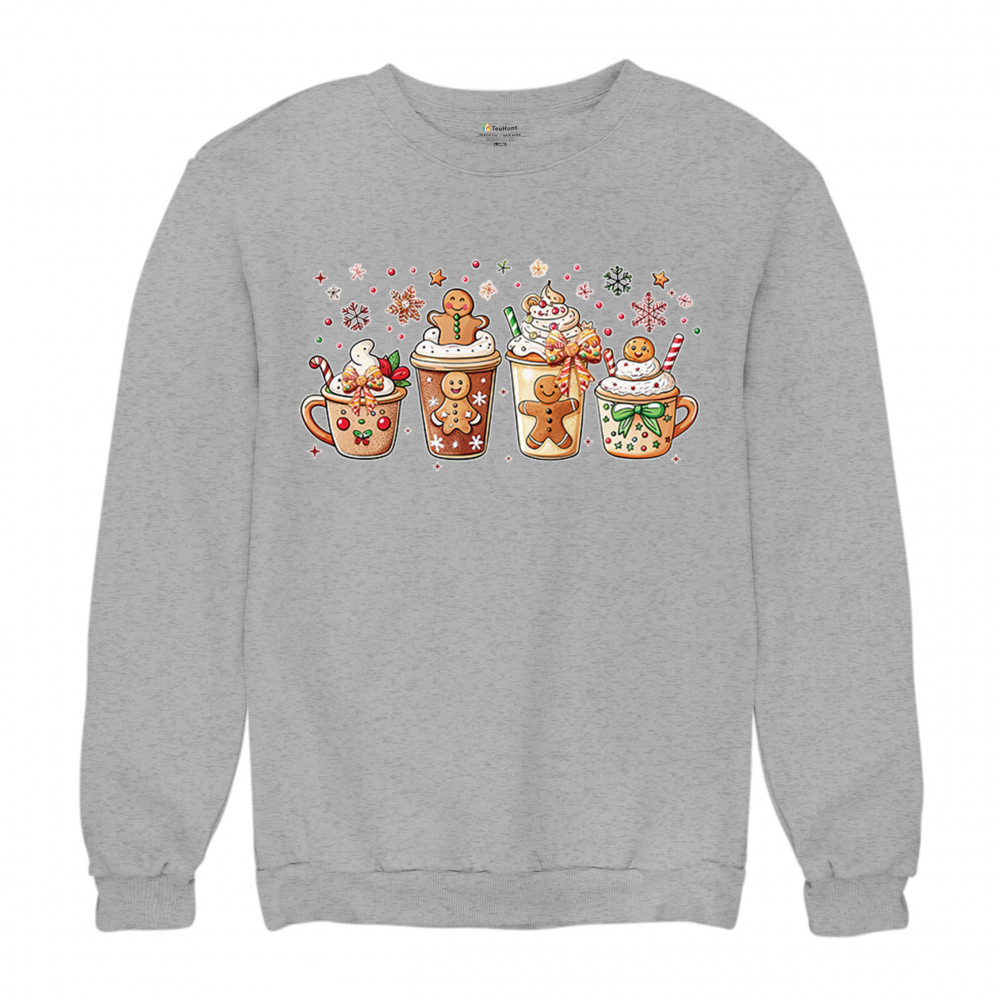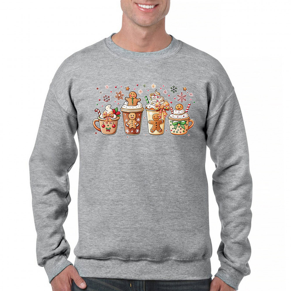 CHRISTMAS DRINKS crewneck sweatshirt cozy hot chocolate gingerbread sprinkles gray
