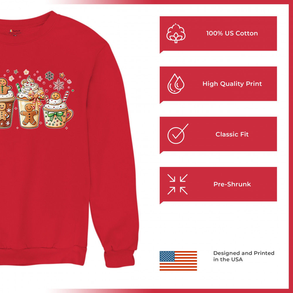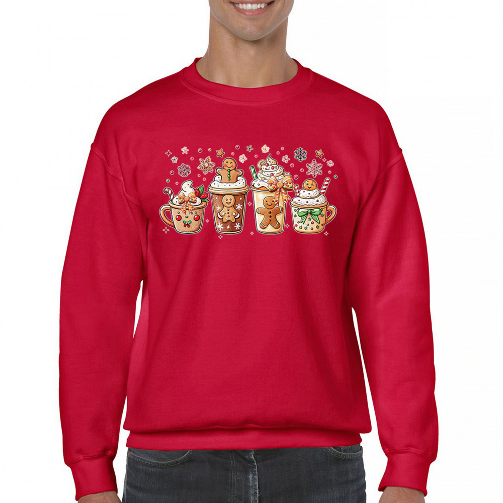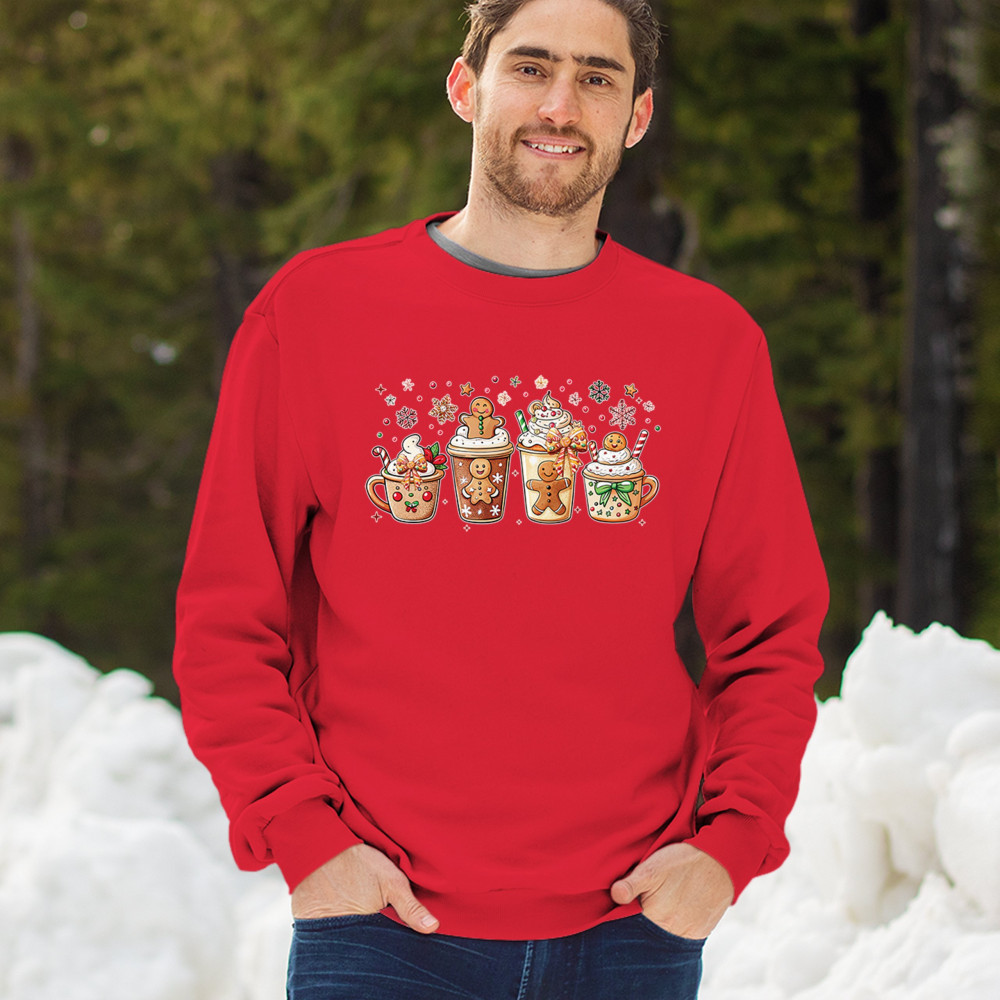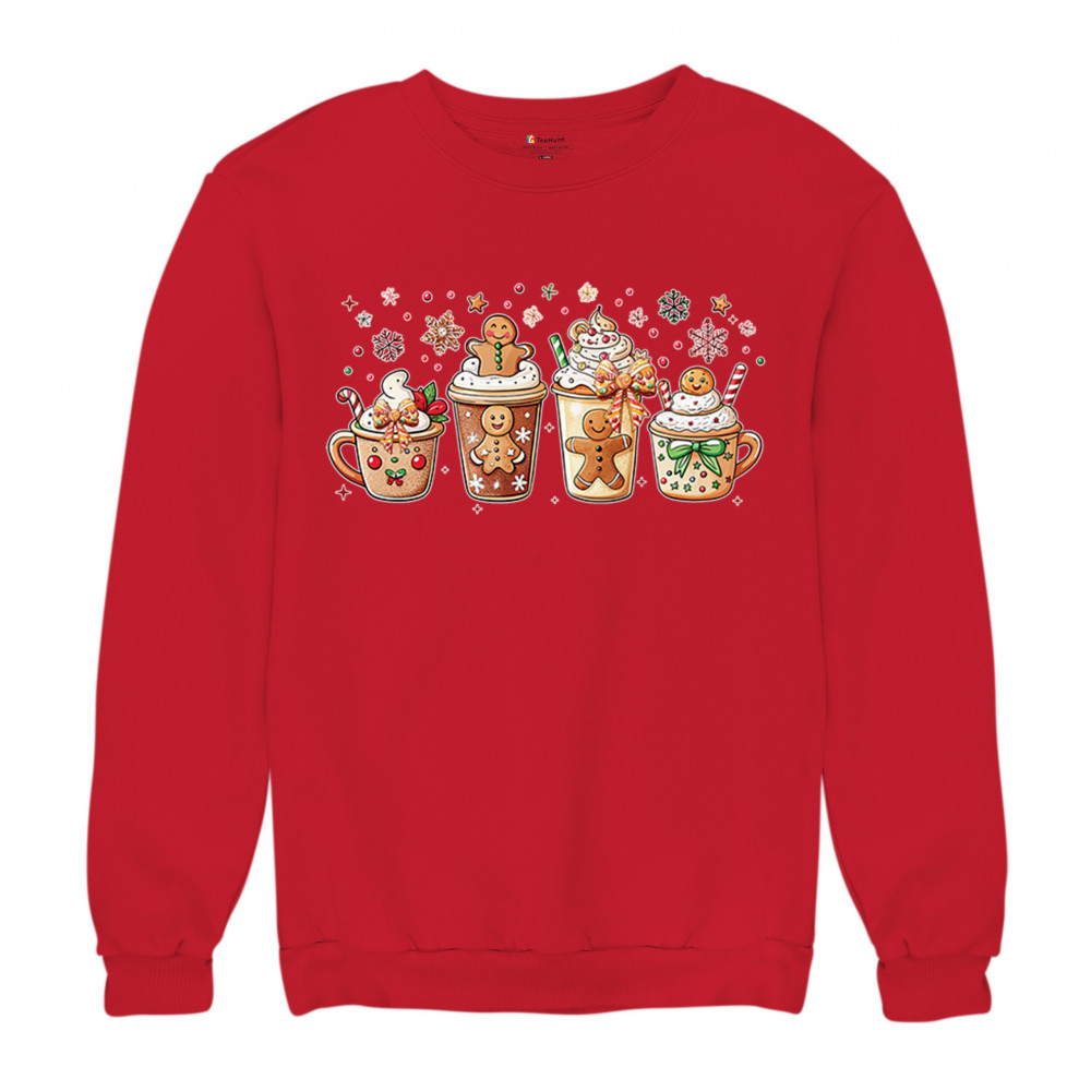 This cute Christmas drink design showcases gingerbread mugs, whipped cream, candy canes, sprinkles, and festive decorations for a warm winter aesthetic. Perfect for cocoa lovers, coffee fans, bakers, cozy holiday nights, gift exchanges, Christmas morning vibes, seasonal parties, and anyone who loves adorable dessert-inspired holiday art.