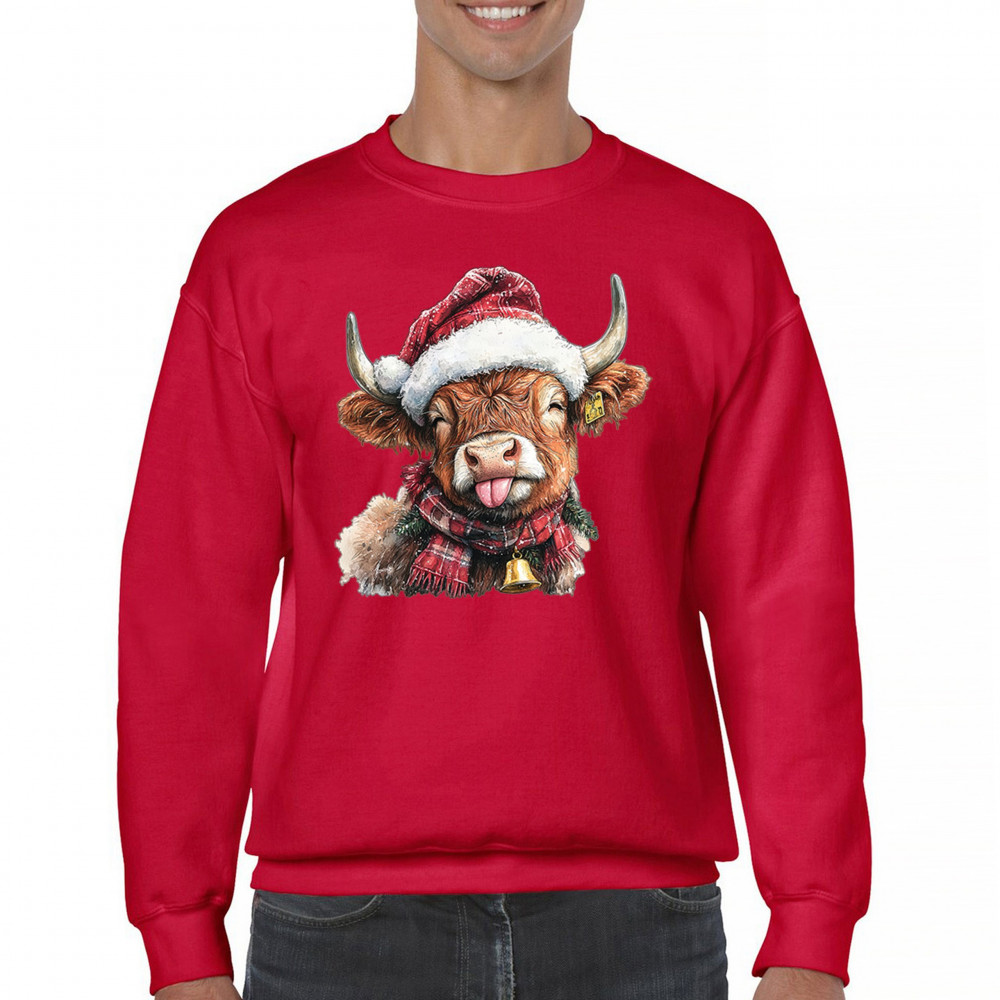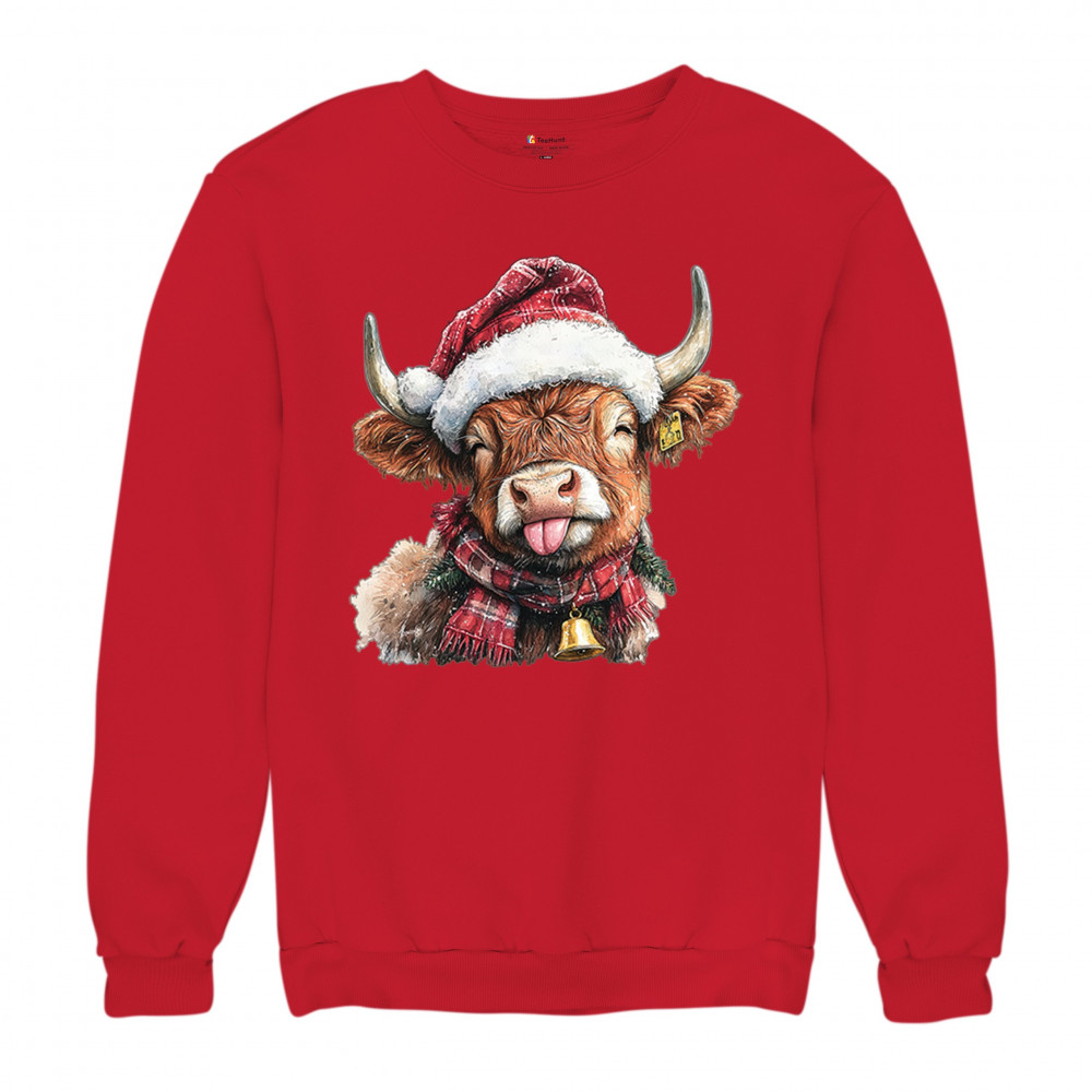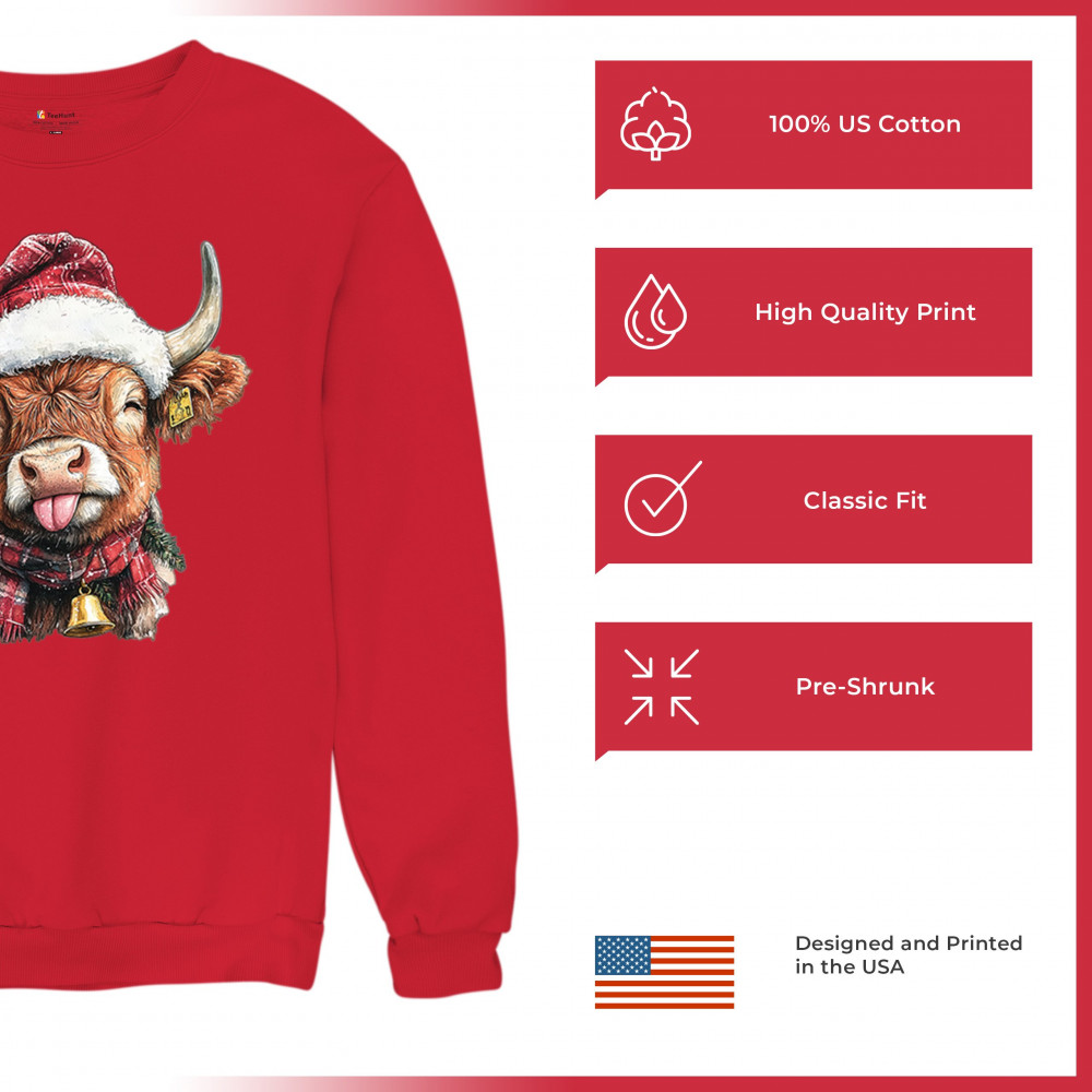 Christmas Highland Cow shirt – rustic holiday design with Santa hat cow, farmhouse holiday humor, country Christmas vibes, and festive livestock art.