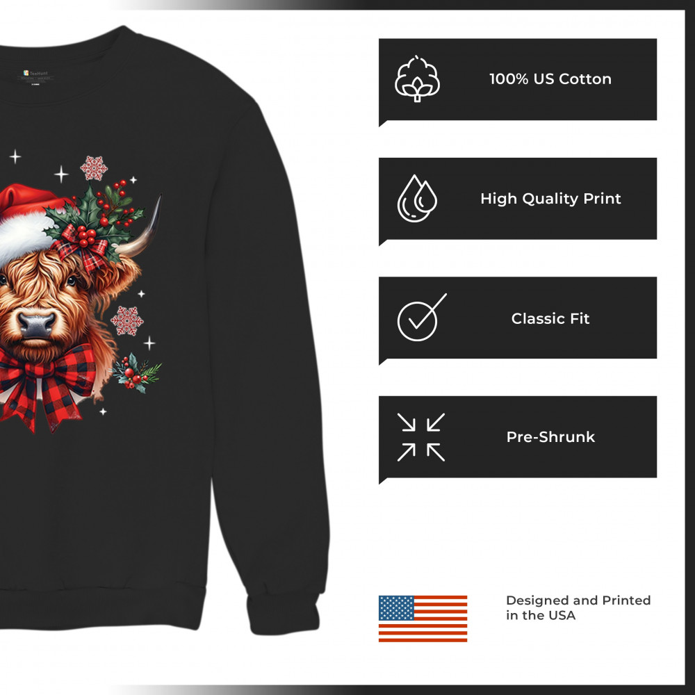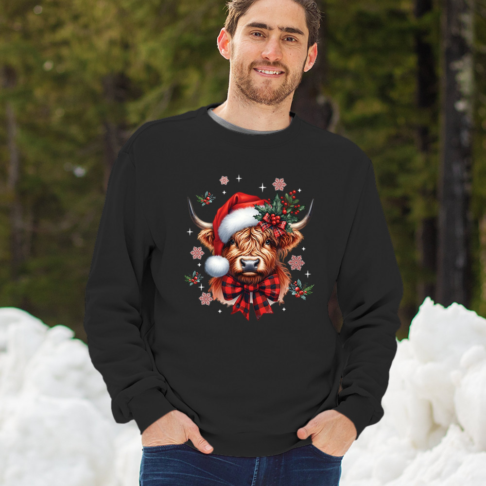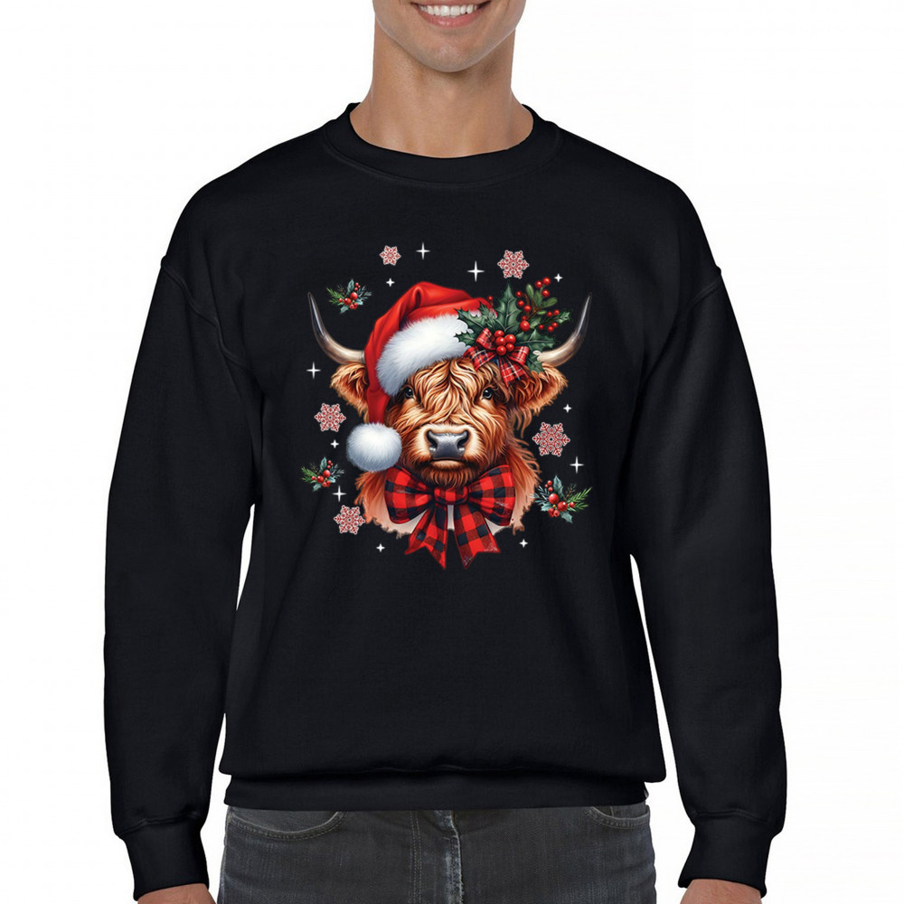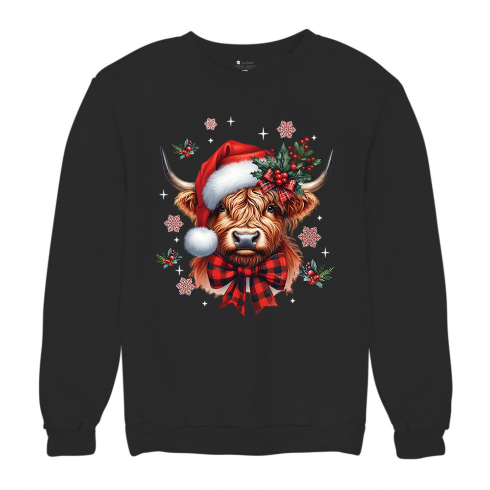 CHRISTMAS HOLLY COW crewneck sweatshirt festive xmas holiday season spirit black