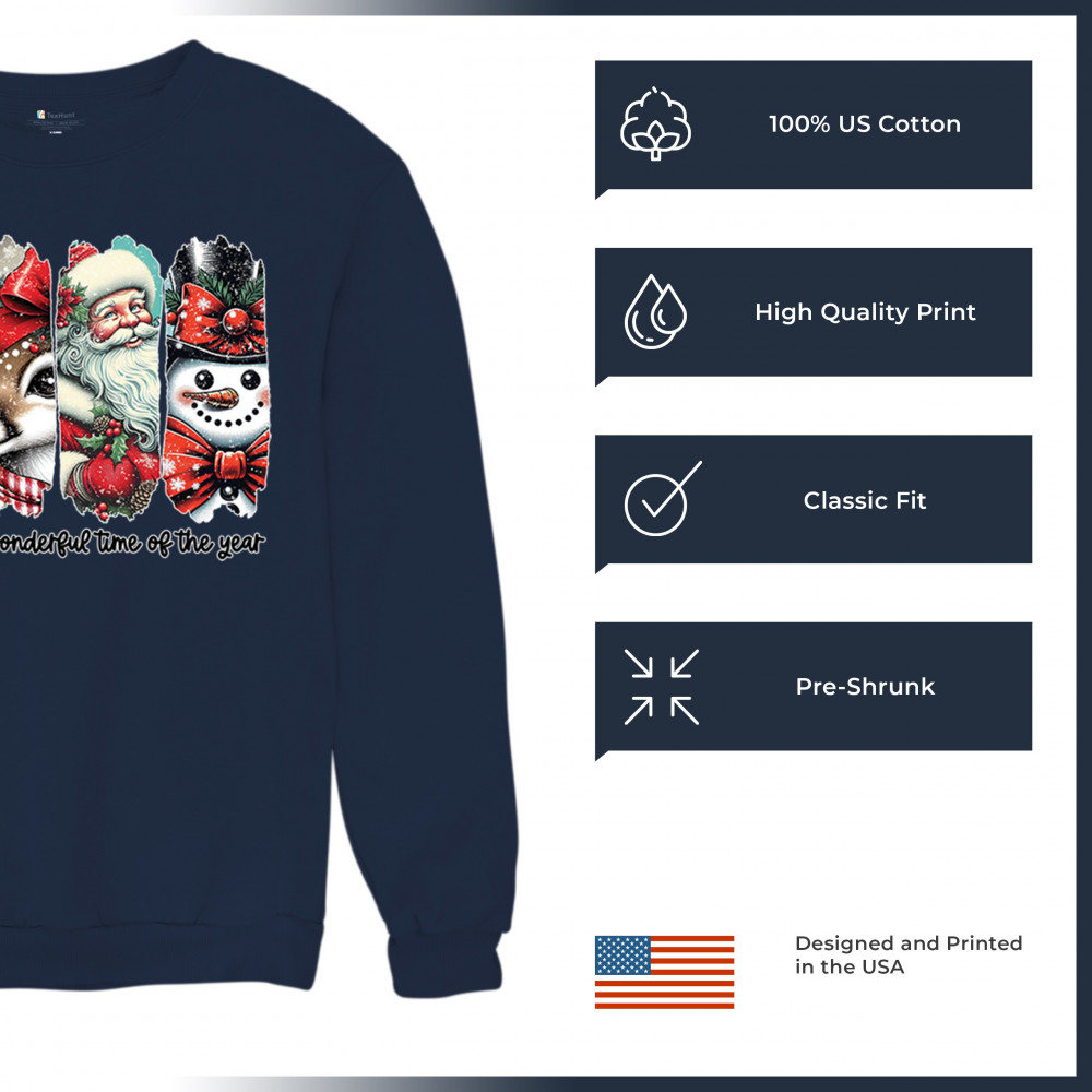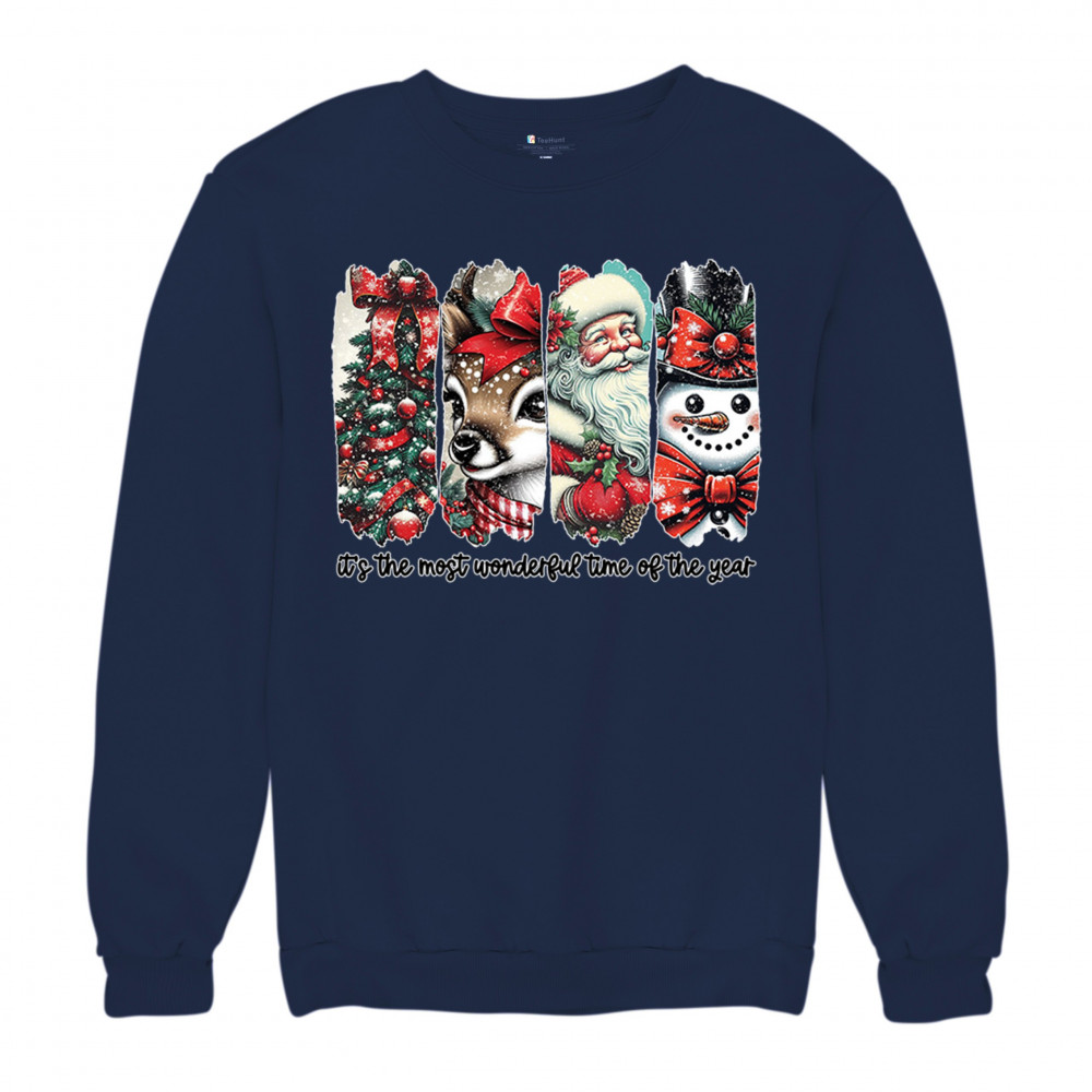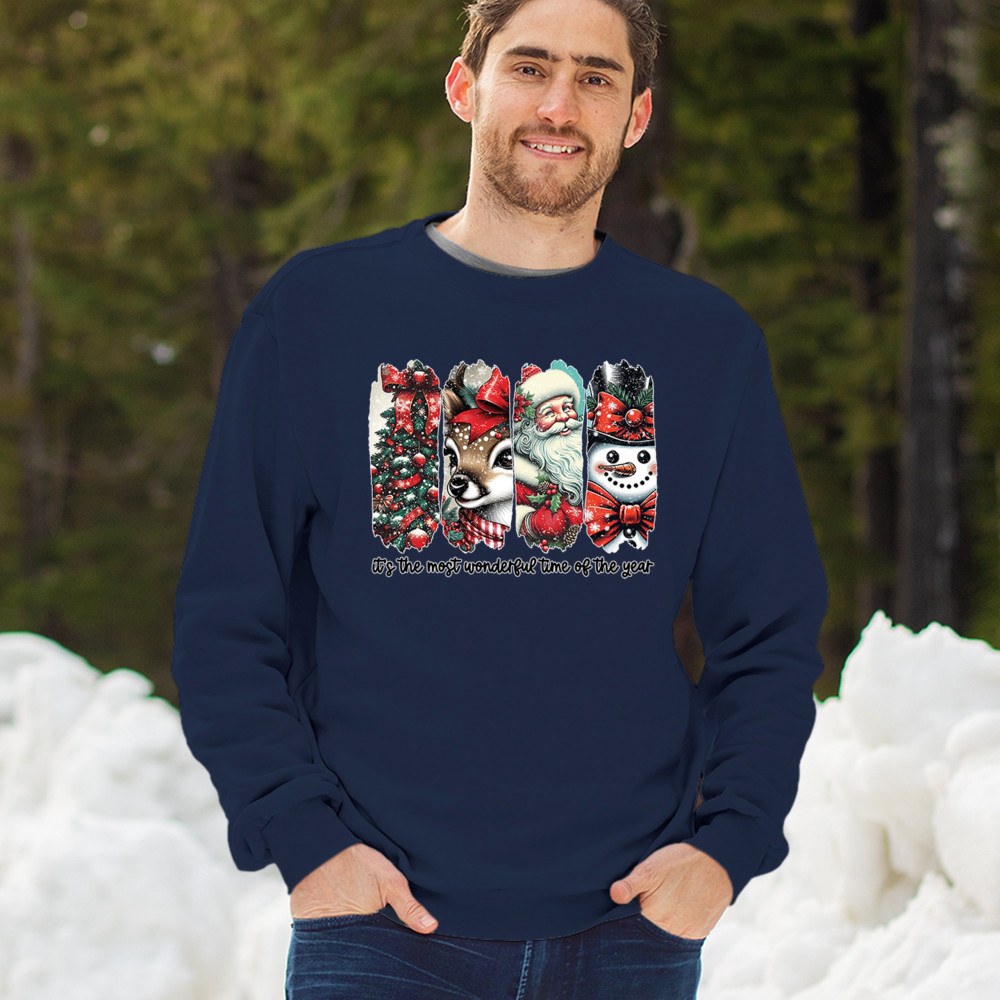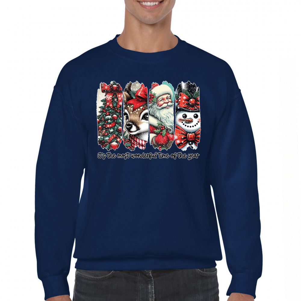 CHRISTMAS SQUAD crewneck sweatshirt santa snowman rudolph xmas tree festive navy blue