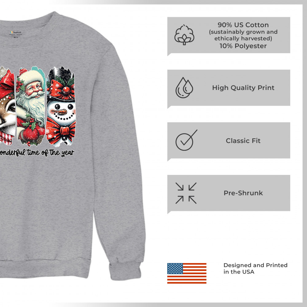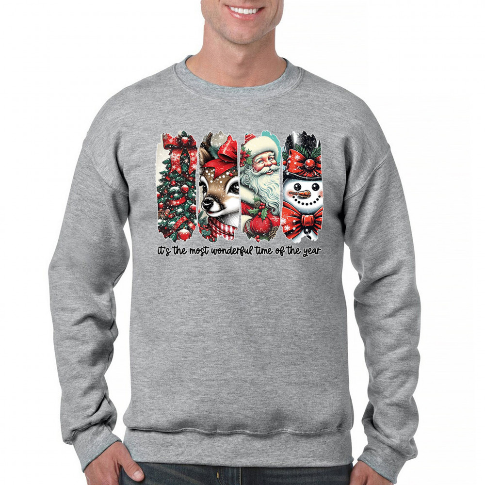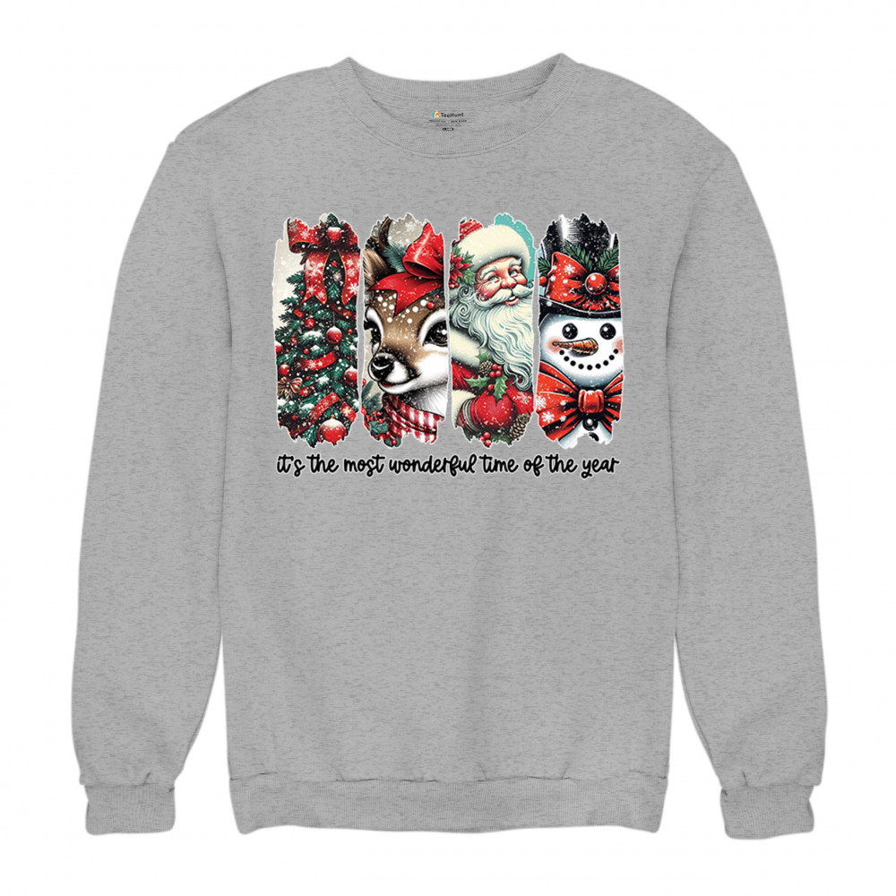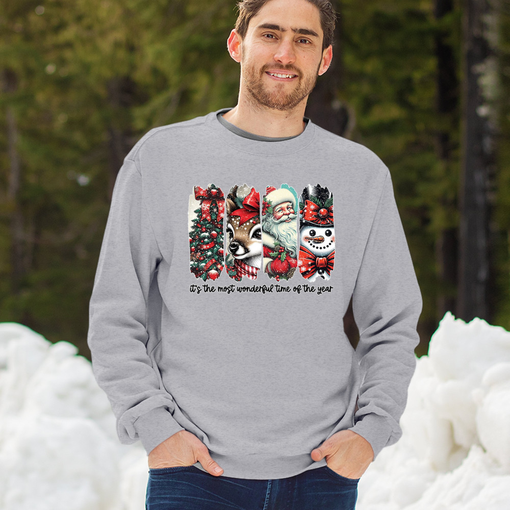 This Christmas design blends a decorated tree, sweet reindeer, vintage Santa, and a bright snowman for a classic seasonal look. Ideal for holiday lovers, winter gatherings, festive parties, gift exchanges, Christmas morning, and anyone who enjoys cheerful, nostalgic holiday art. A warm, eye-catching design that brings out the magic of the season.