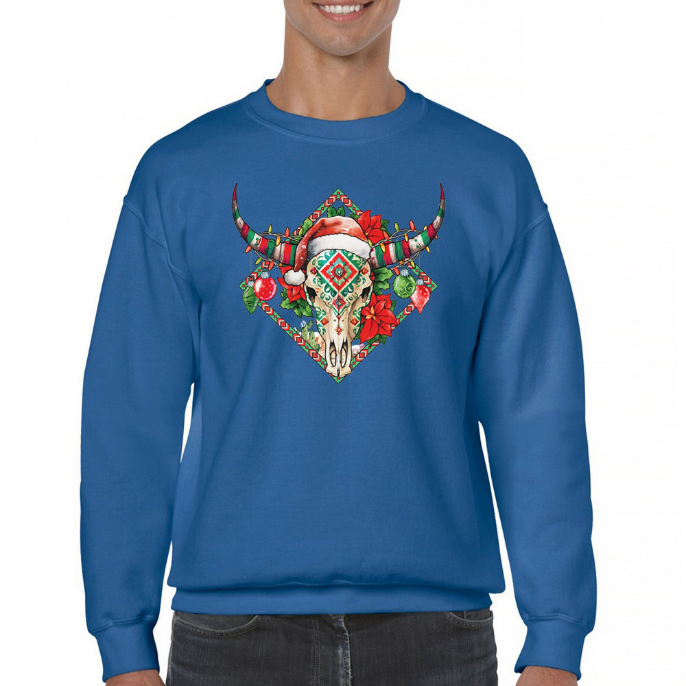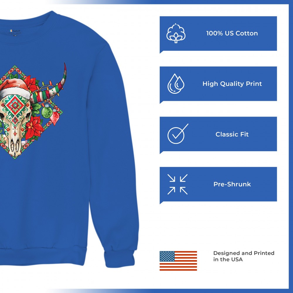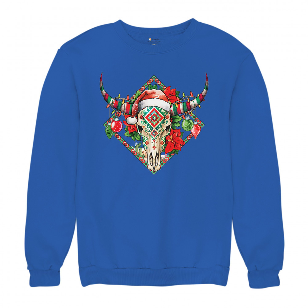Blend Southwestern charm with holiday cheer! This vibrant skull design with poinsettias and ornaments is perfect for festive parties and unique gifts!