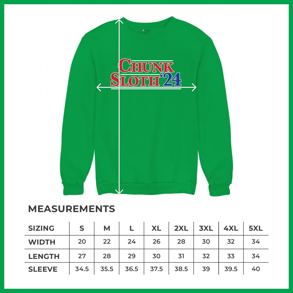 Celebrate 80s nostalgia and political humor with our Chunk and Sloth '24 design. Perfect for casual wear, movie nights, and themed parties. Durable and stylish.