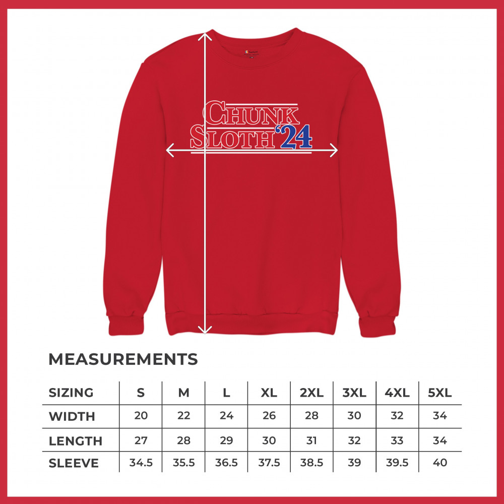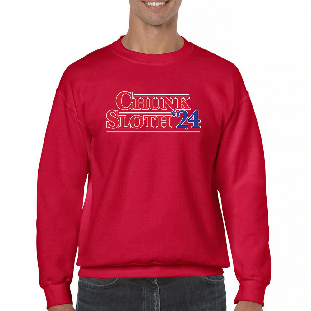 Celebrate 80s nostalgia and political humor with our Chunk and Sloth '24 design. Perfect for casual wear, movie nights, and themed parties. Durable and stylish.