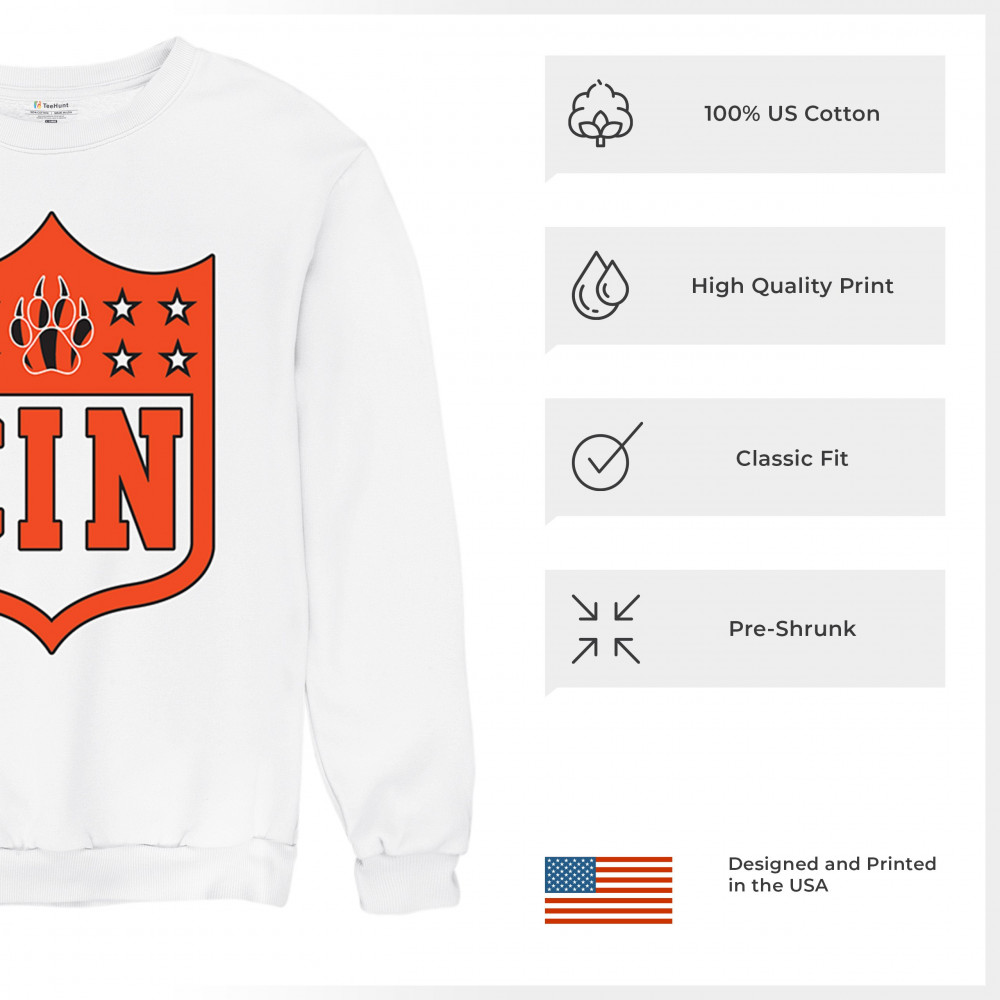 Celebrate your love for Cincinnati football with this CIN shield paw design, blending retro football crest style with vintage football culture. Perfect for Cincinnati sports culture, Cincinnati champions, and Cincinnati football nation, this design embodies underdog spirit, Cincinnati grit, and college football culture. A bold look for Saturday football vibes, Sunday football, and every big game.