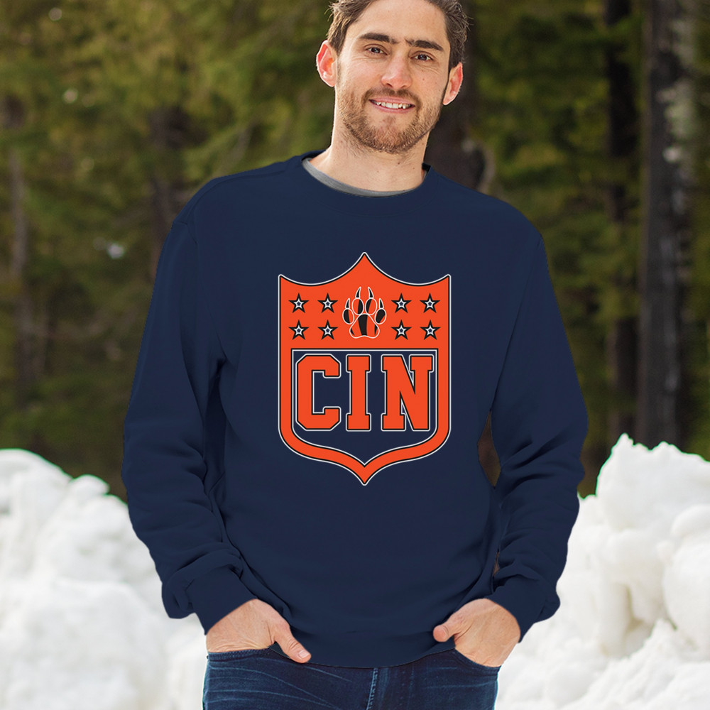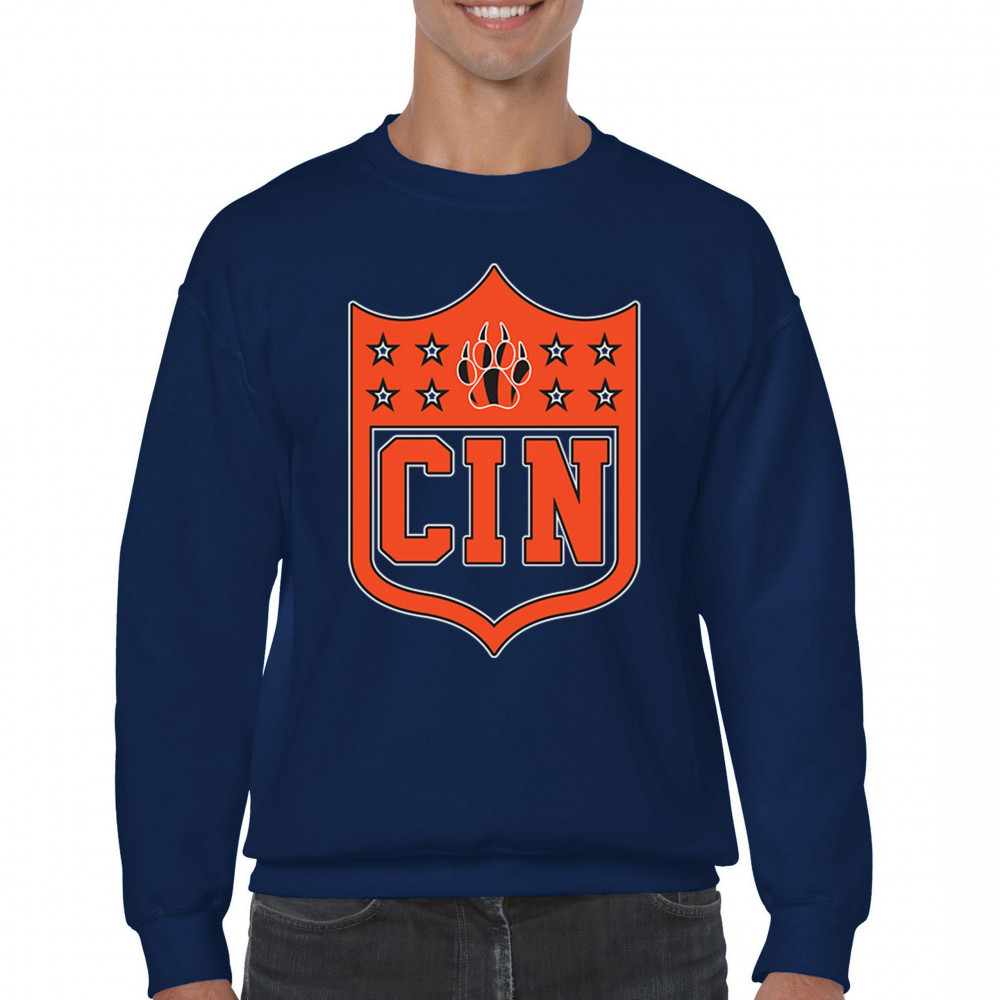 Bold CIN paw shield for Cincinnati football fans. Retro crest style, underdog spirit, and vintage game day gear for true Cincinnati grit.