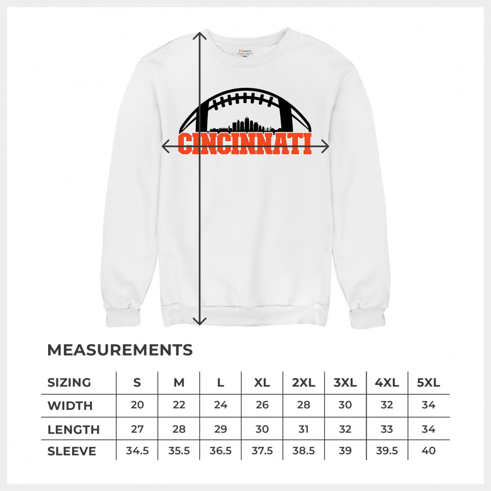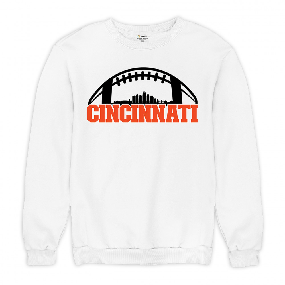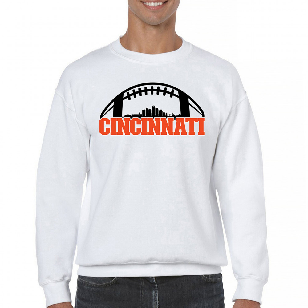 Celebrate Cincinnati and football with this bold skyline design under a football arch. Perfect for fans, tailgates, and game days!