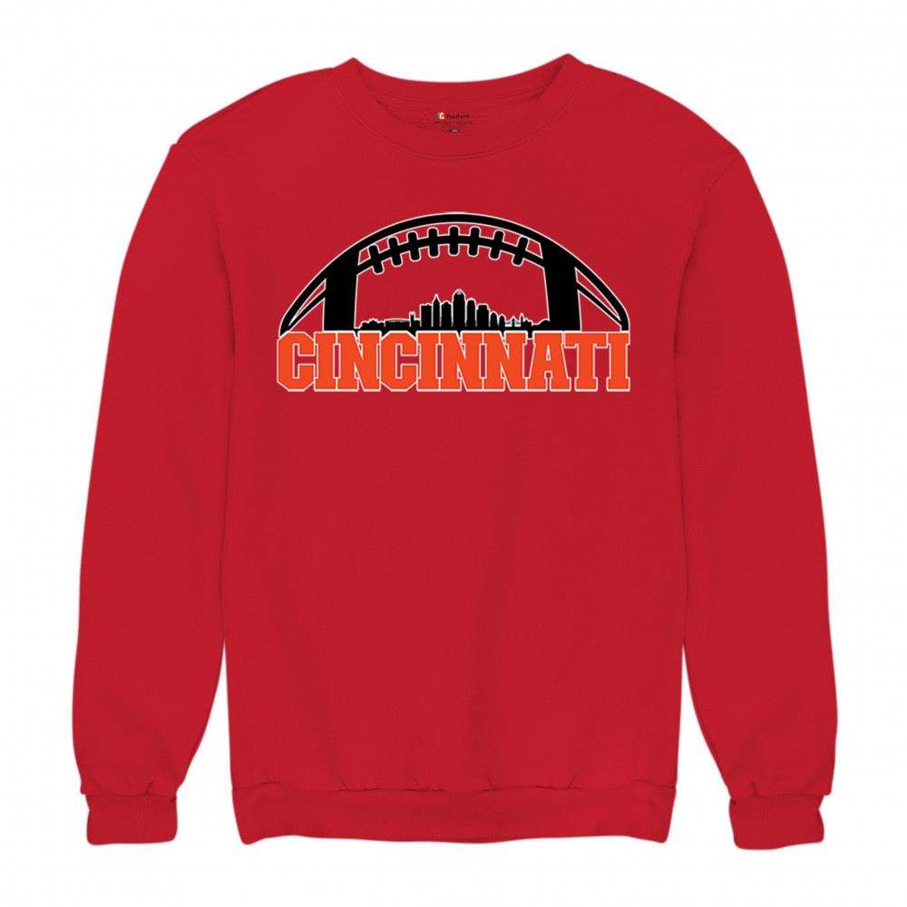 Celebrate Cincinnati and football with this bold skyline design under a football arch. Perfect for fans, tailgates, and game days!