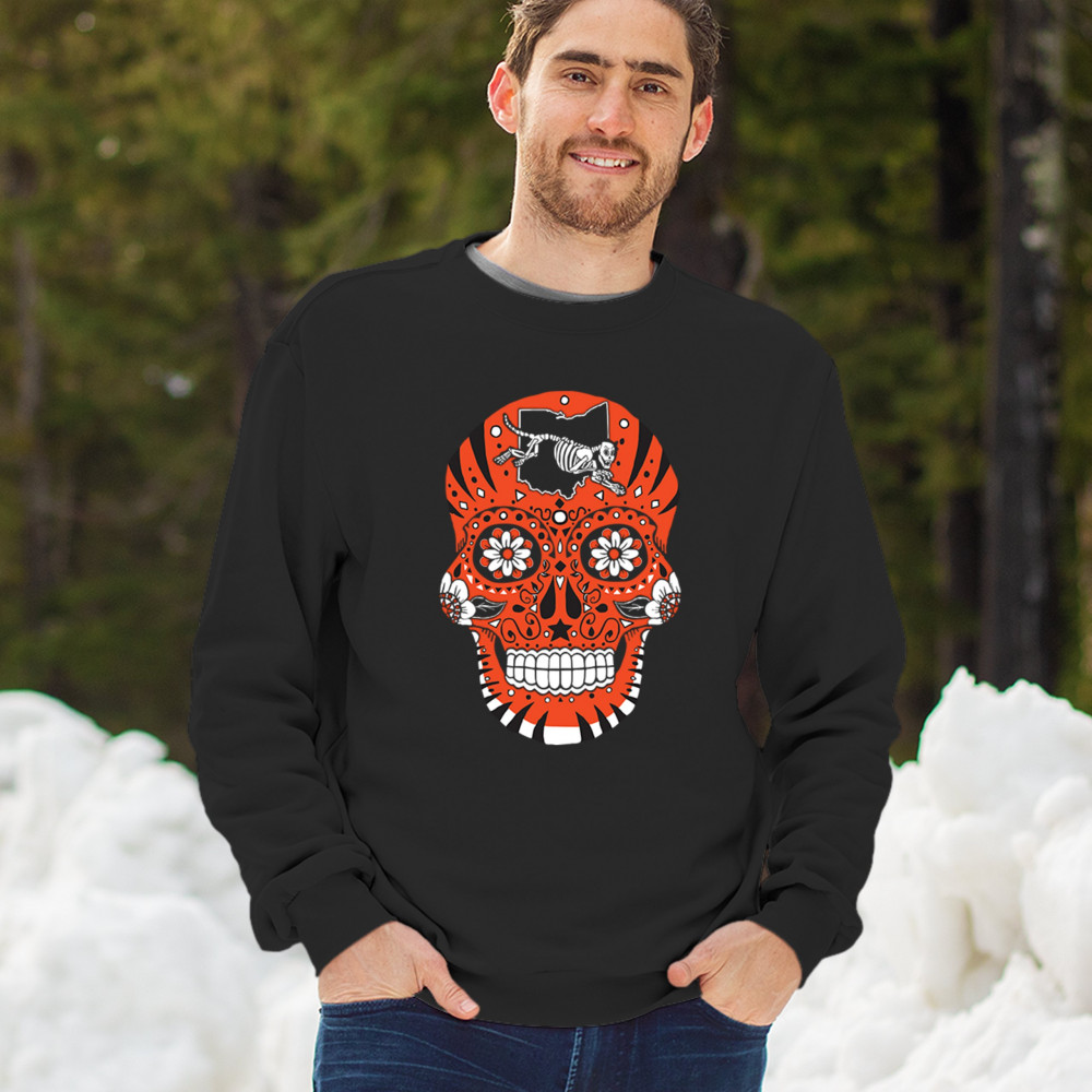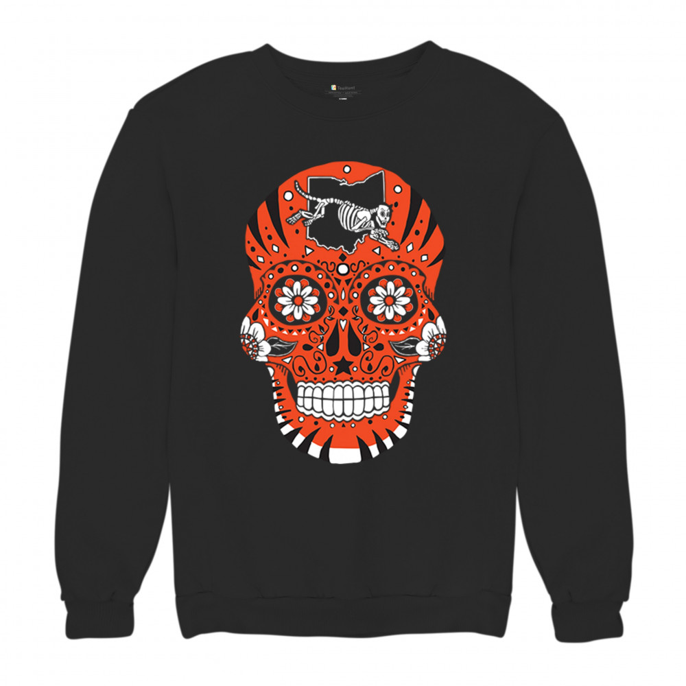 CINCINNATI SUGAR SKULL crewneck sweatshirt die-hard football fan tailgating black