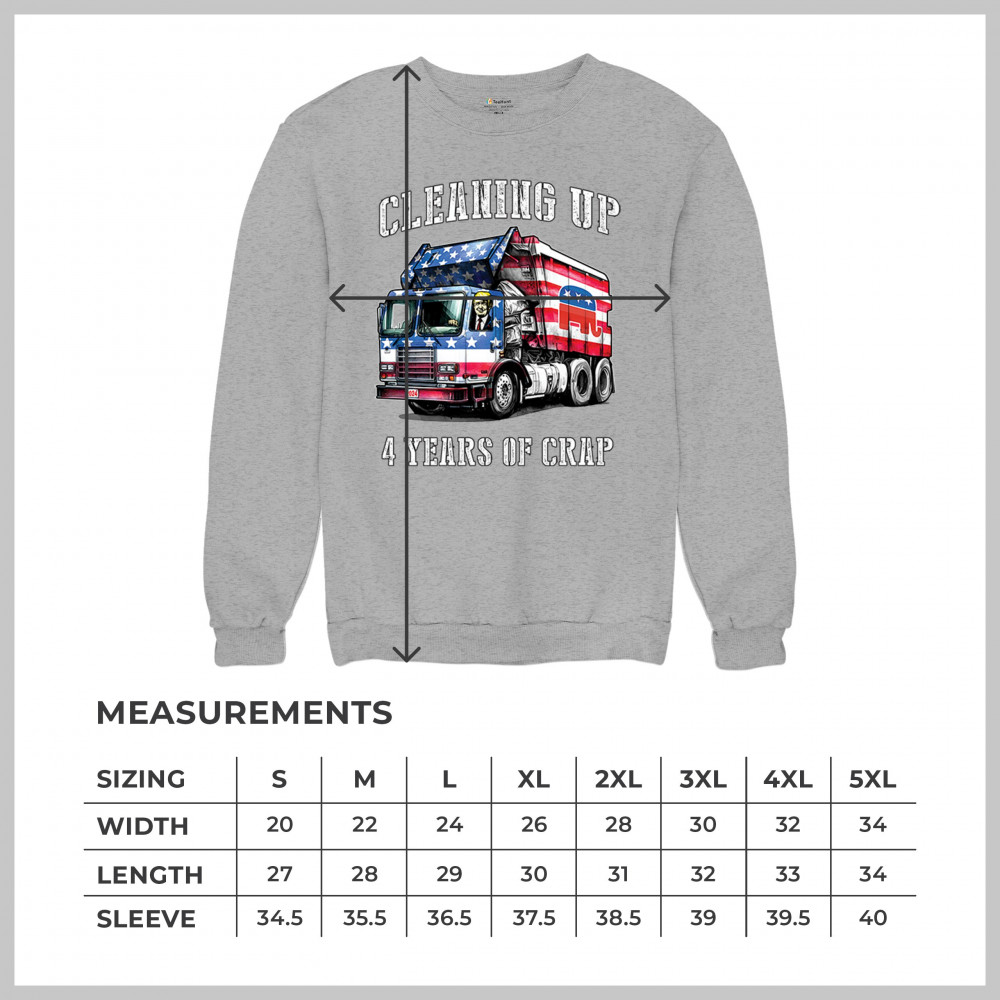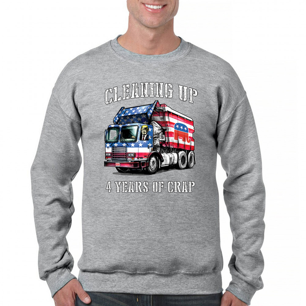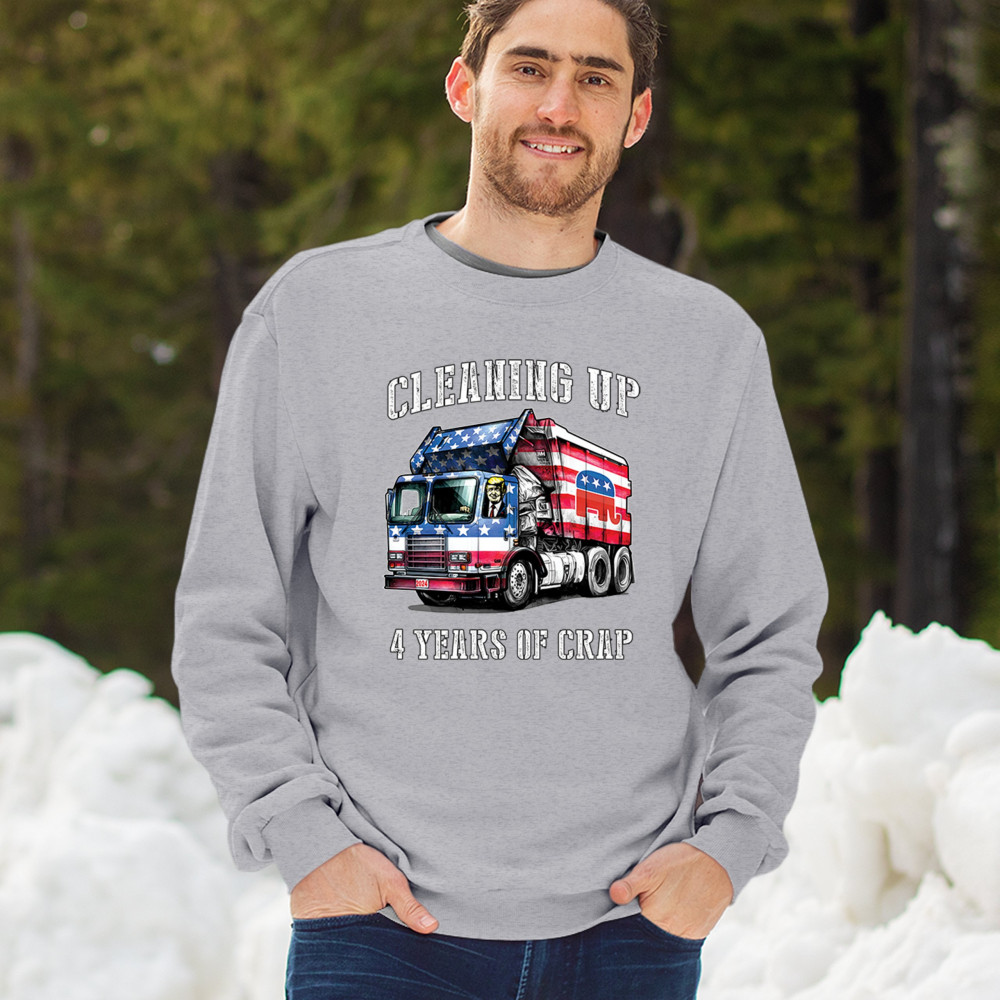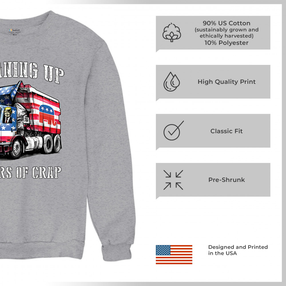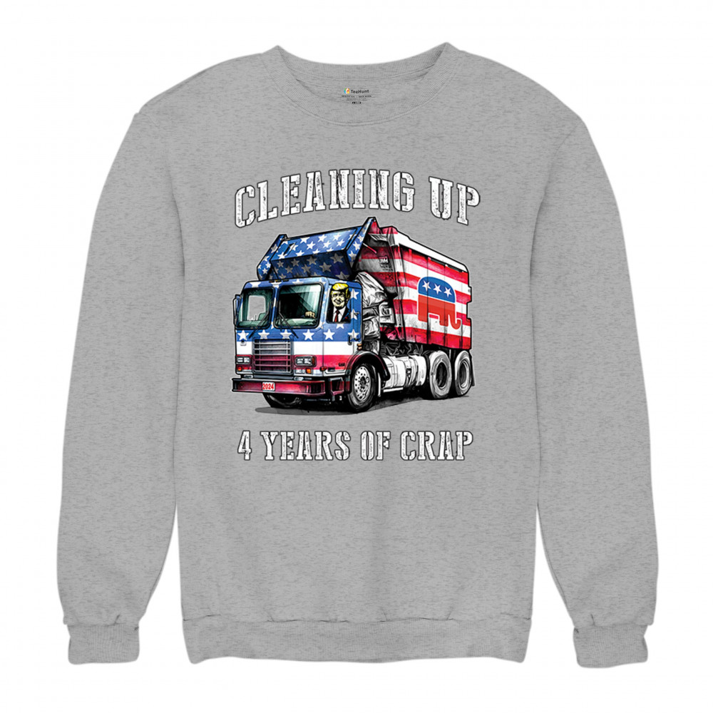Bold "Cleaning Up 4 Years of Crap" design featuring Trump, the GOP, and the American flag. Perfect for proud conservatives and patriots.