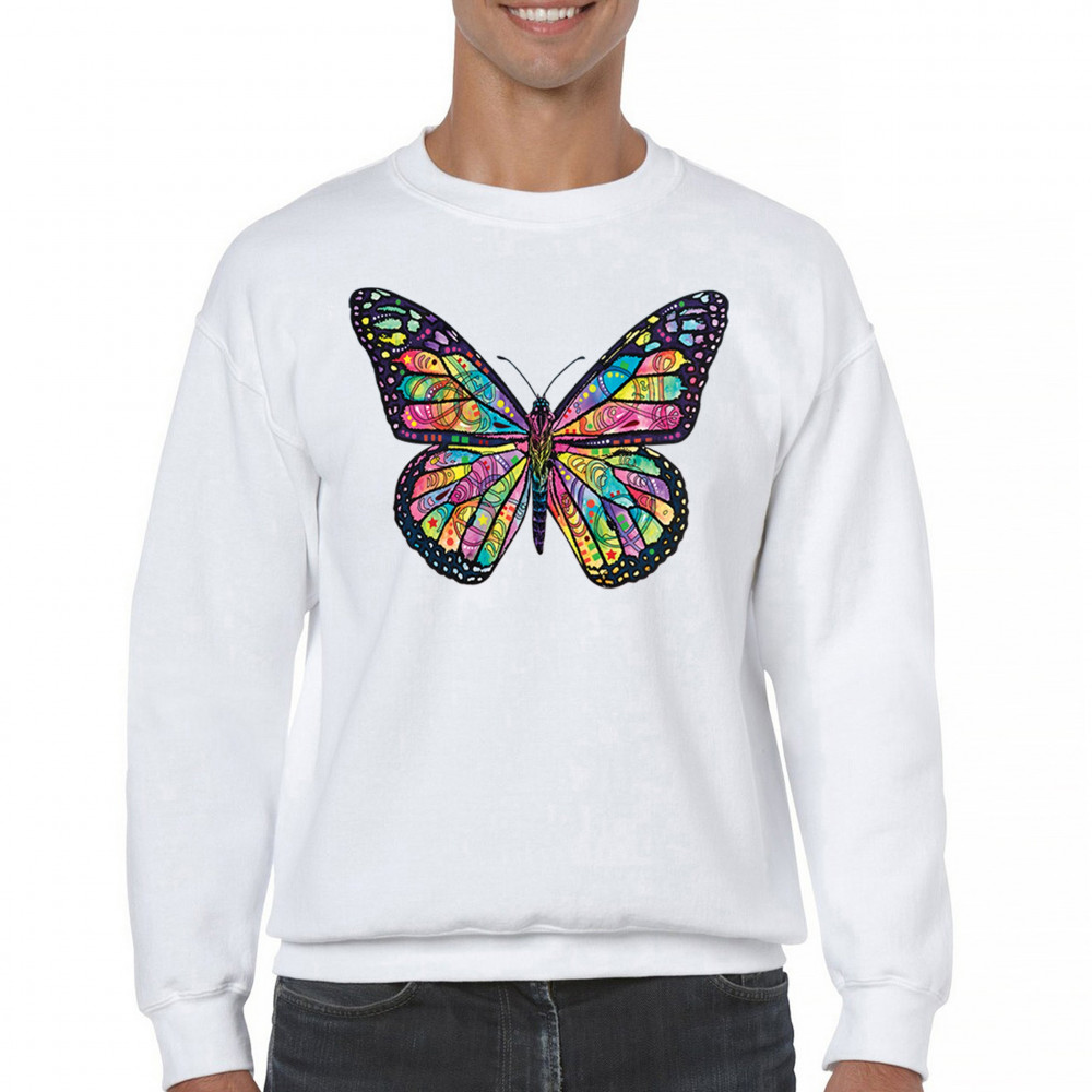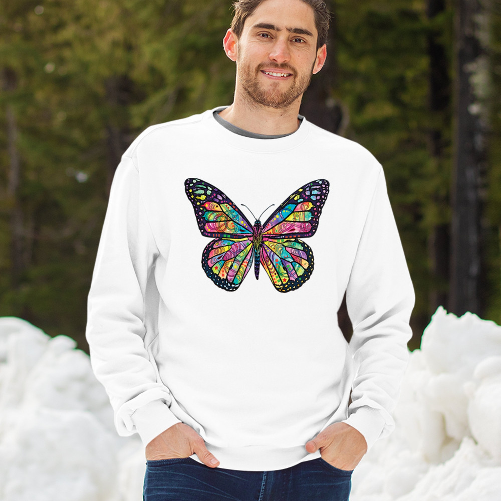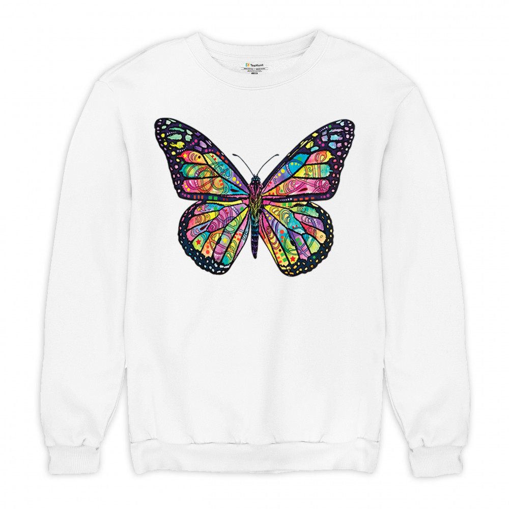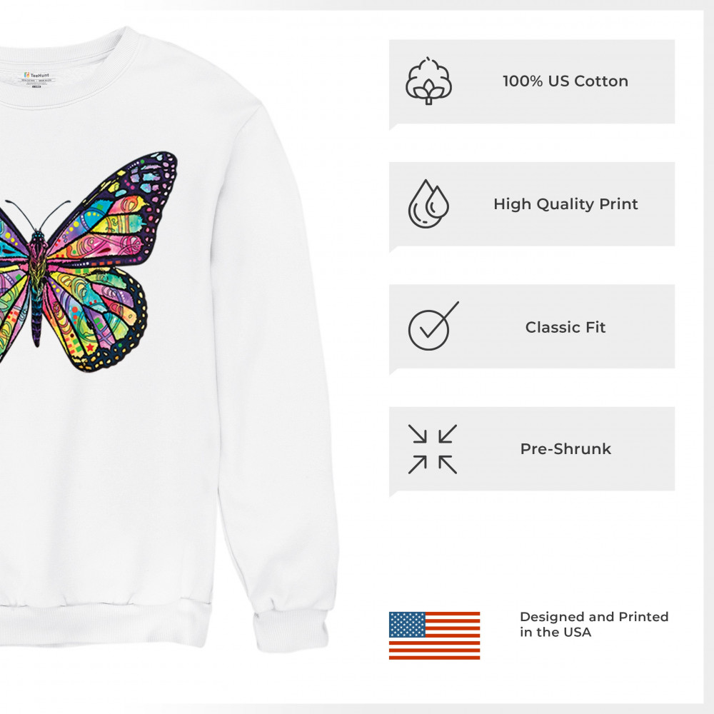 COLORFUL NEON BUTTERFLY sweatshirt dean russo beautiful nature crewneck white