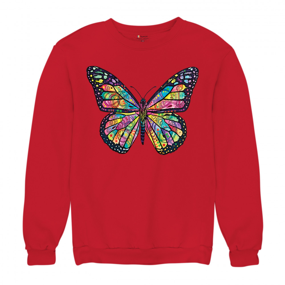 COLORFUL NEON BUTTERFLY sweatshirt dean russo beautiful nature crewneck red