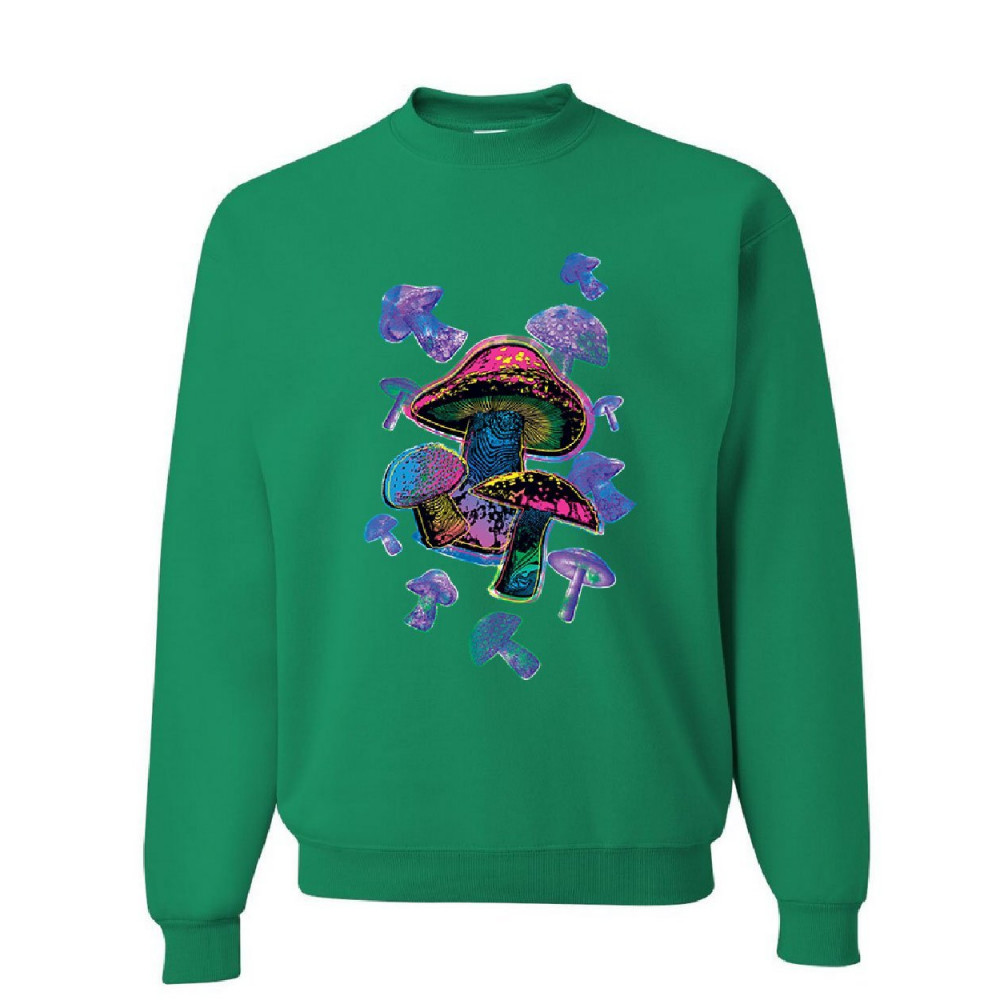 NEON MUSHROOMS colorful sweatshirt shrooms psychedelic psilocybin sweater green
