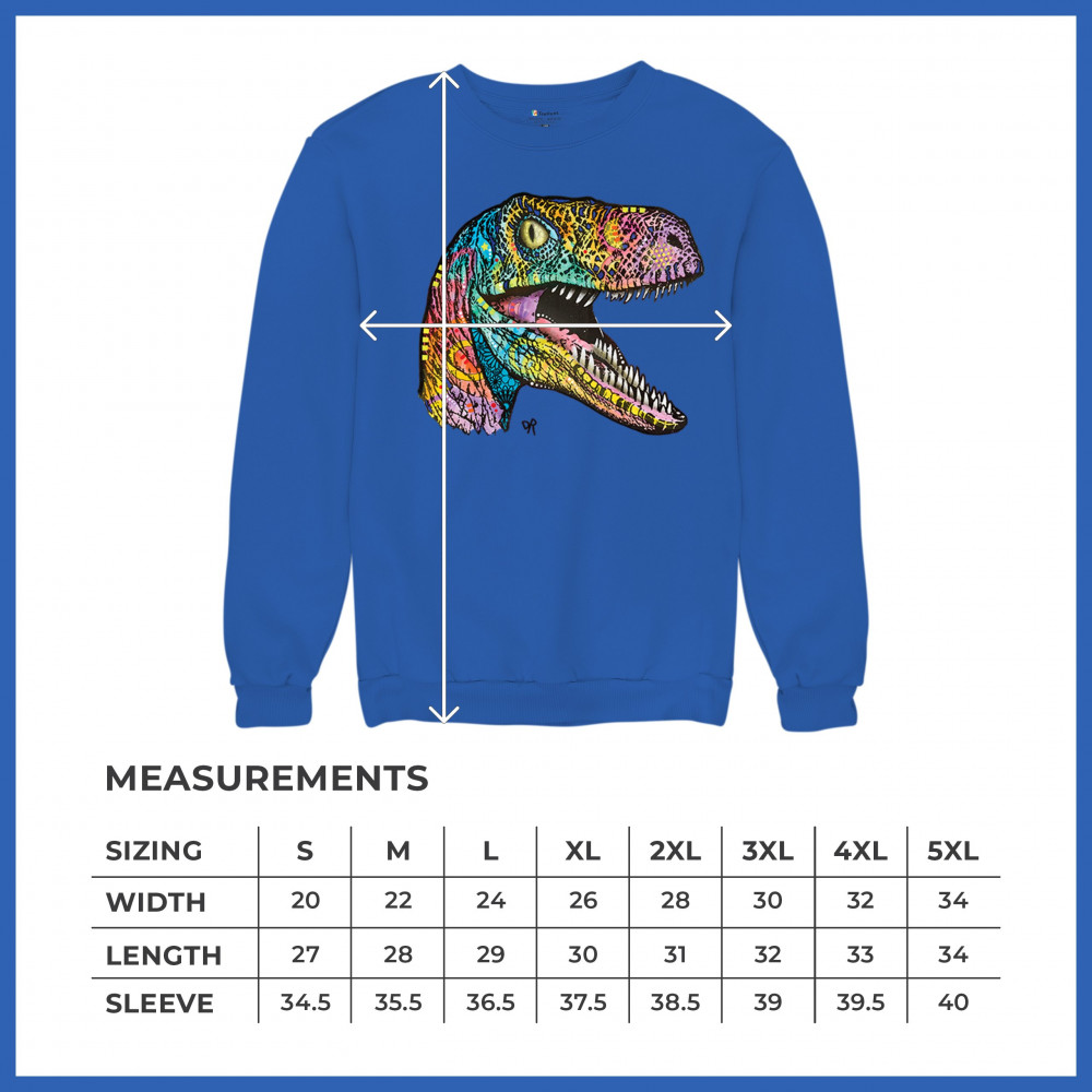 COLORFUL RAPTOR sweatshirt dean russo neon jurassic dinosaur crewneck royal blue