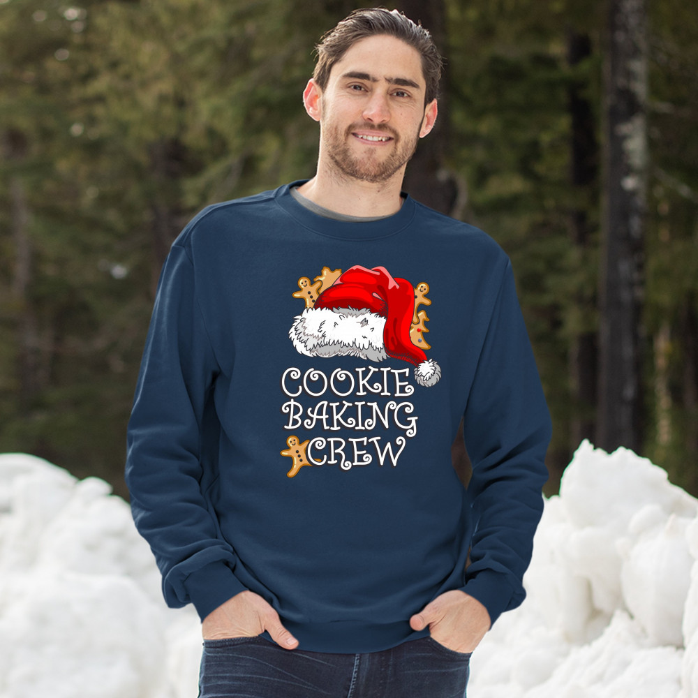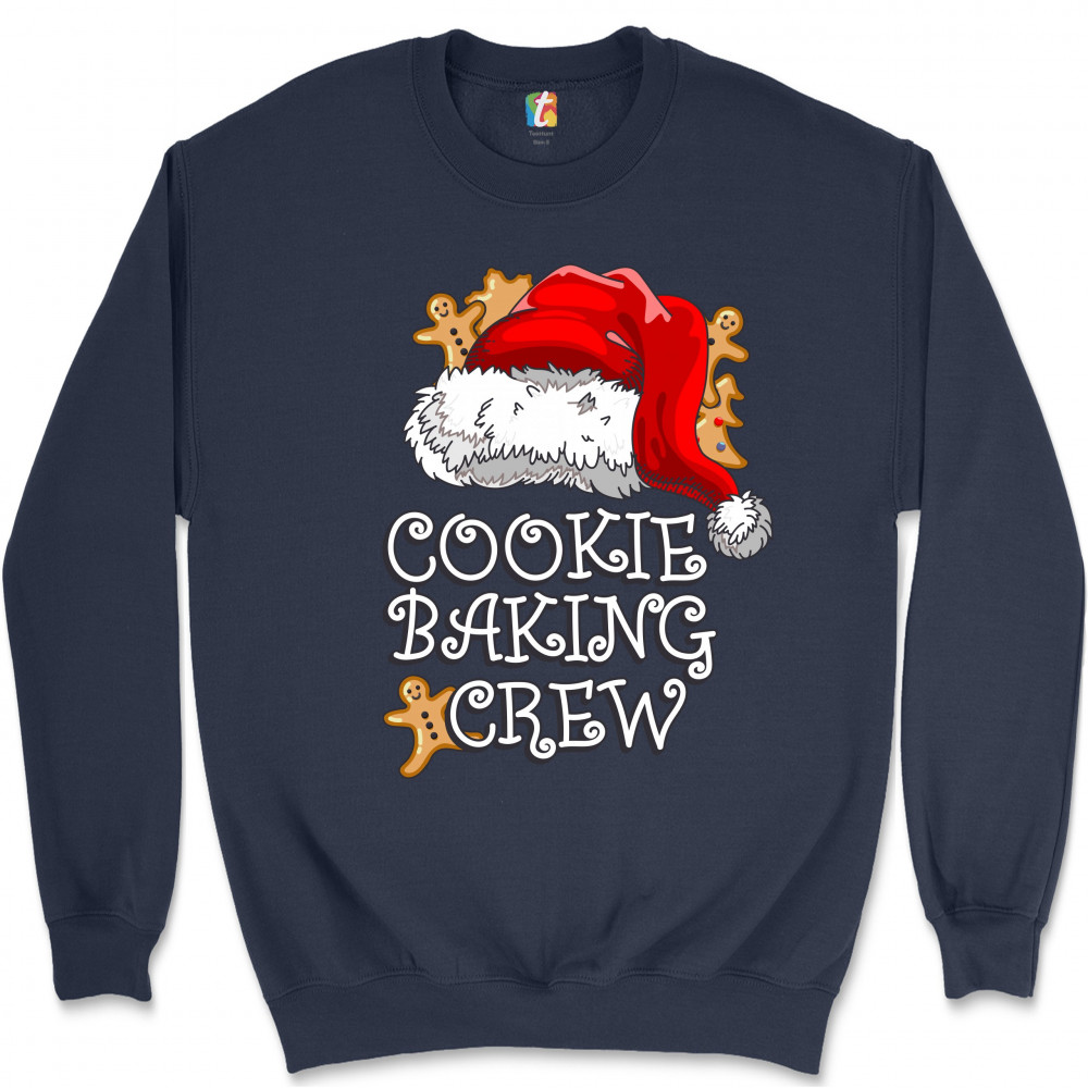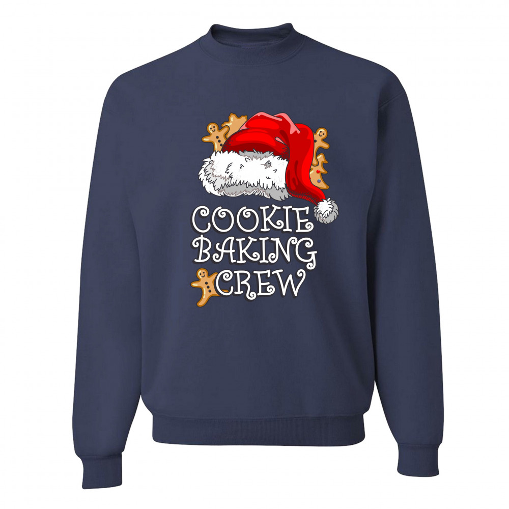 COOKIE BAKING CRUE sweatshirt santa's hat christmas gingerbread men crewneck navy blue