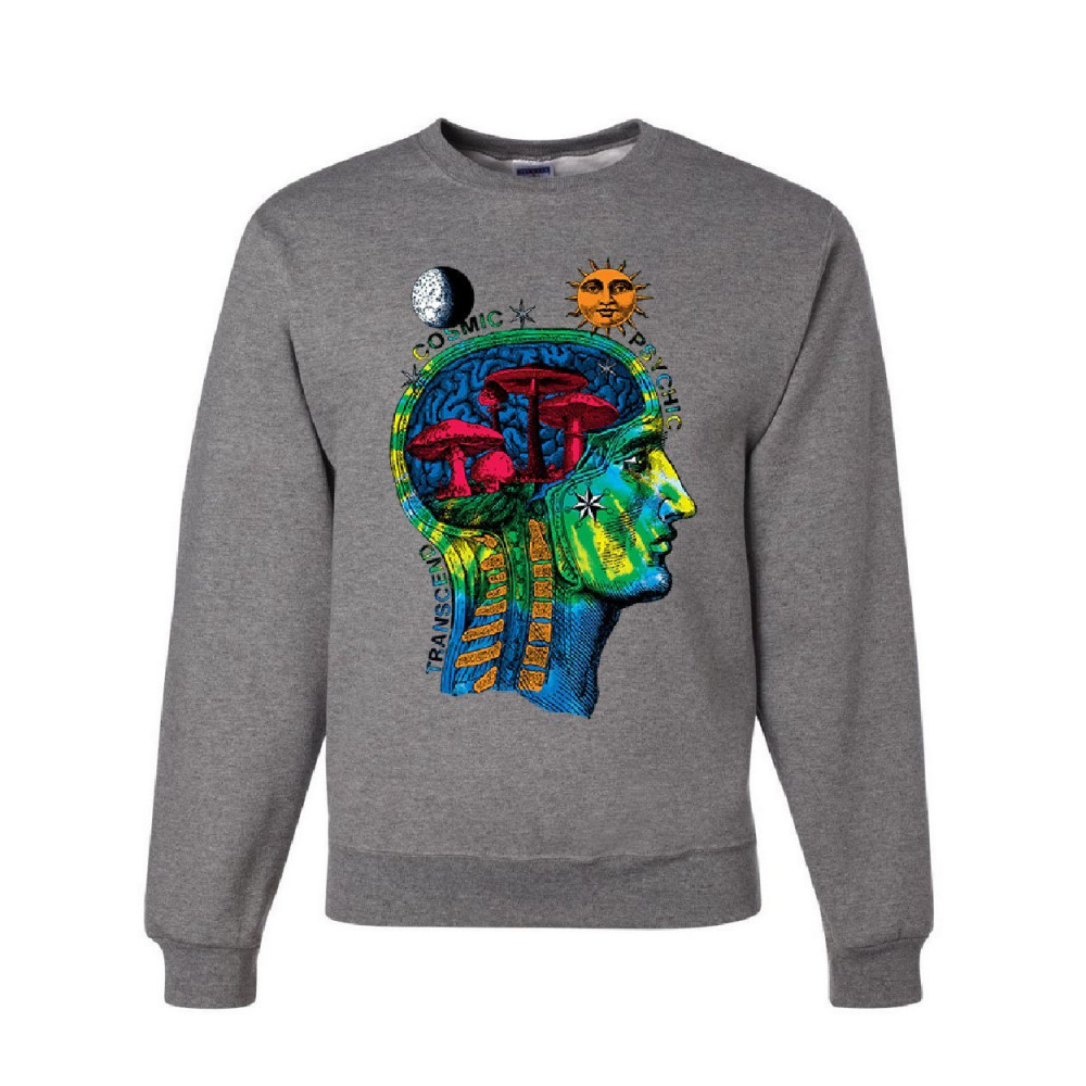 MUSHROOM HEAD cosmic psychic transcend sweatshirt psychedelic trippy weird space sweater gray