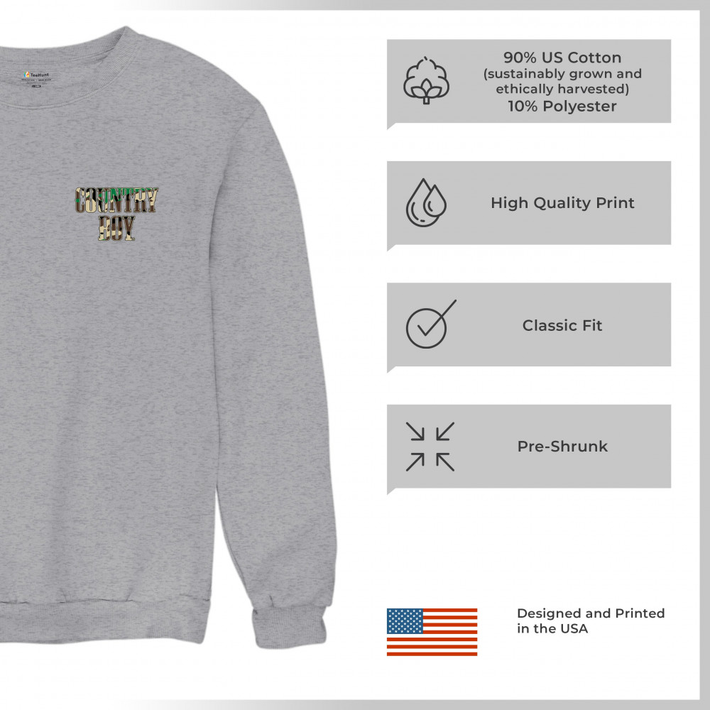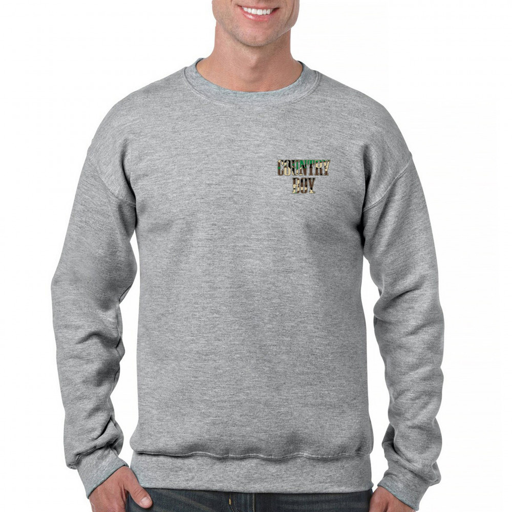 COUNTRY BOY CAMO CREST crewneck sweatshirt small town rodeo cowboy military gray