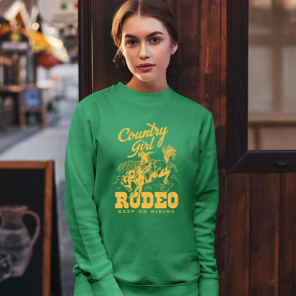 COUNTRY GIRL RODEO sweatshirt keep on riding vintage western cowgirl crewneck green