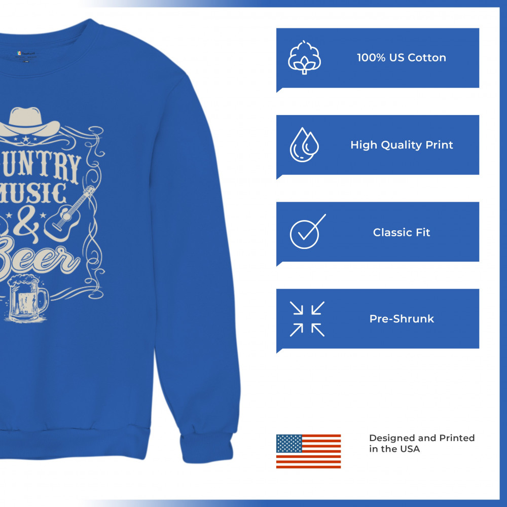 Channel your inner country star with this vintage-style design featuring guitars, a cowboy hat, scroll flourishes, and a cold beer mug. Perfect for fans of country music and beer who love rodeos, tailgates, festivals, or just chilling at the bar. Rustic charm and southern soul meet in one perfect print.