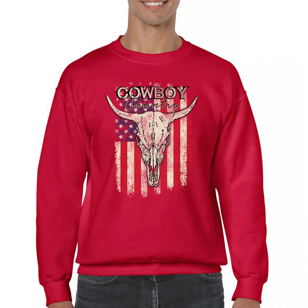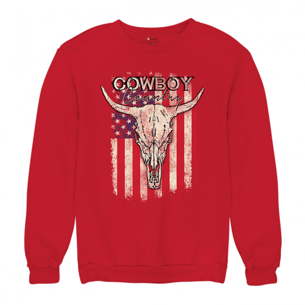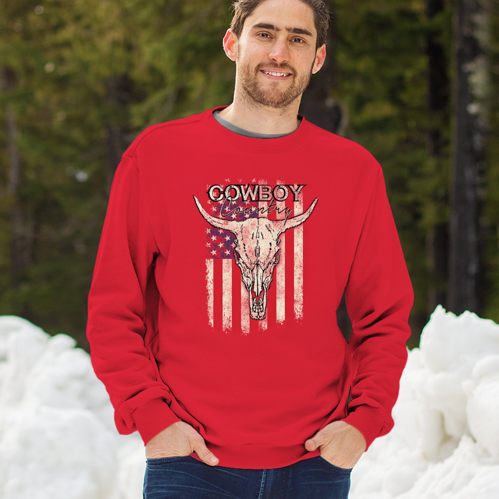 Cowboy Country steer skull design fuses rustic Americana, rodeo style, western heritage, and desert vibes for true frontier spirit.