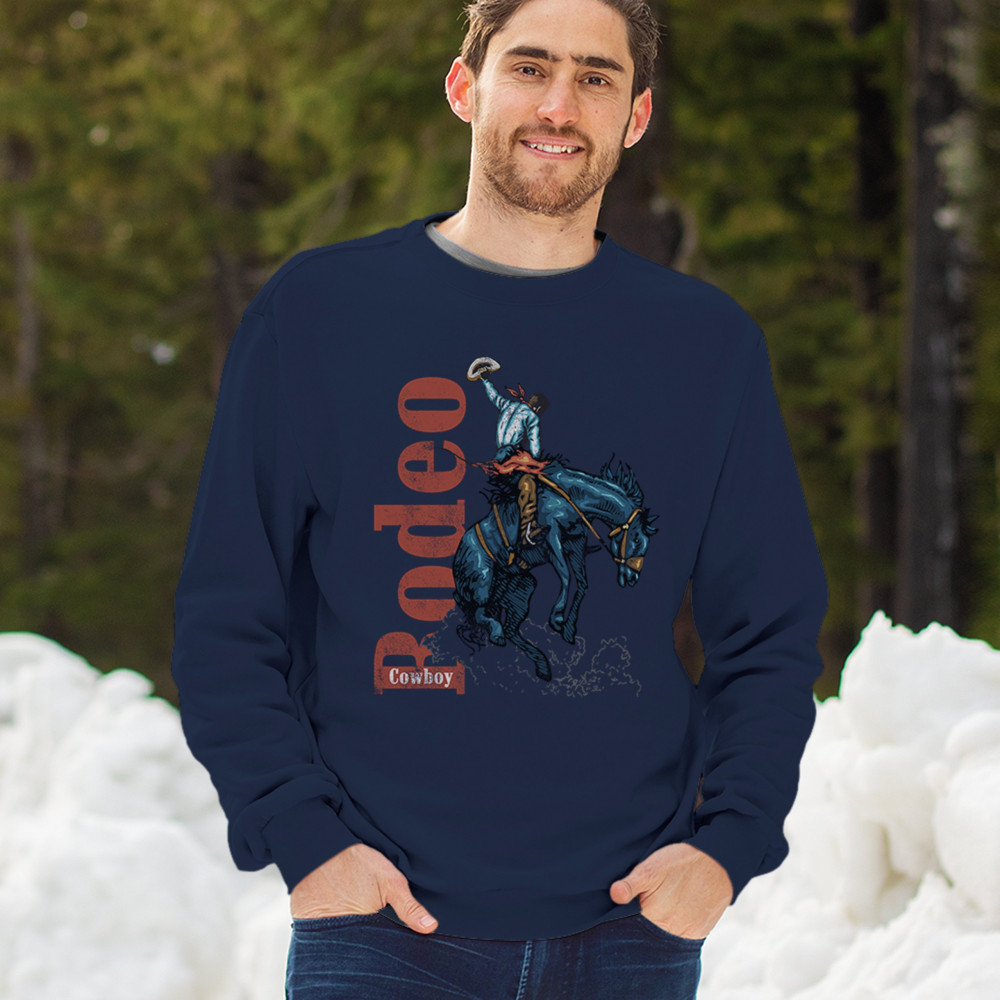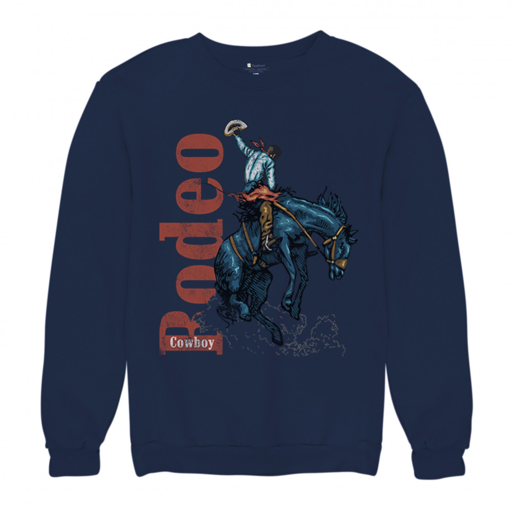 COWBOY RODEO sweatshirt vintage horse rider american crewneck navy blue