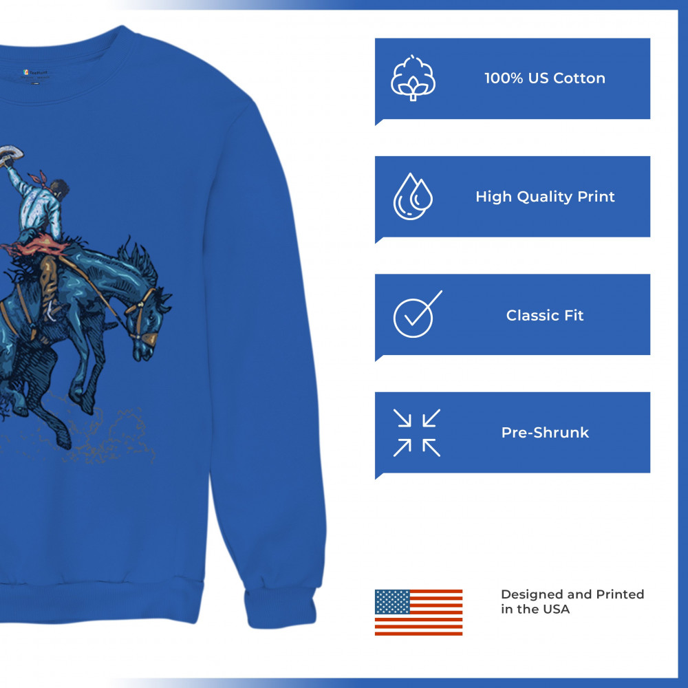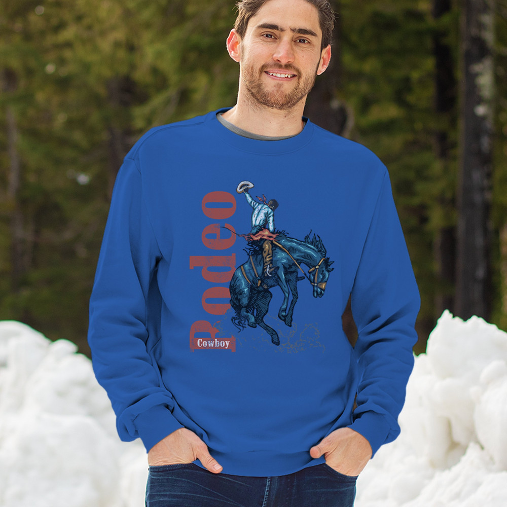 COWBOY RODEO sweatshirt vintage horse rider american crewneck royal blue