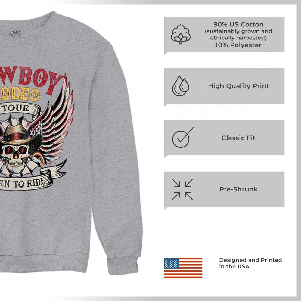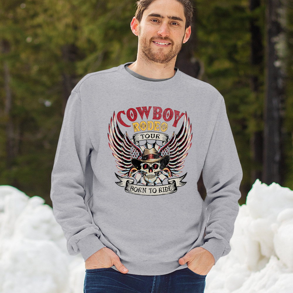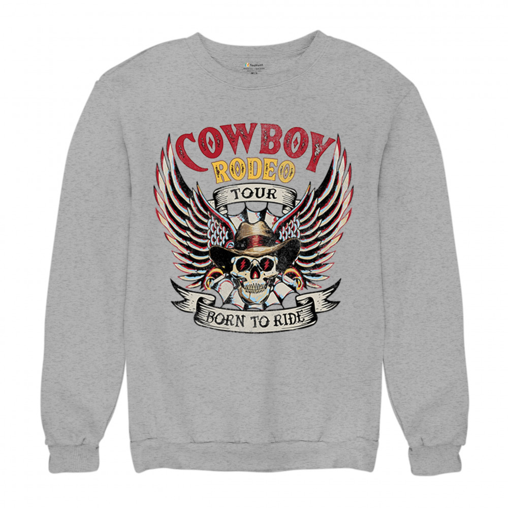 Cowboy Rodeo Tour “Born to Ride†design with skull, wings, and western grit. Built for riders, rebels, and rodeo fans who live wild.