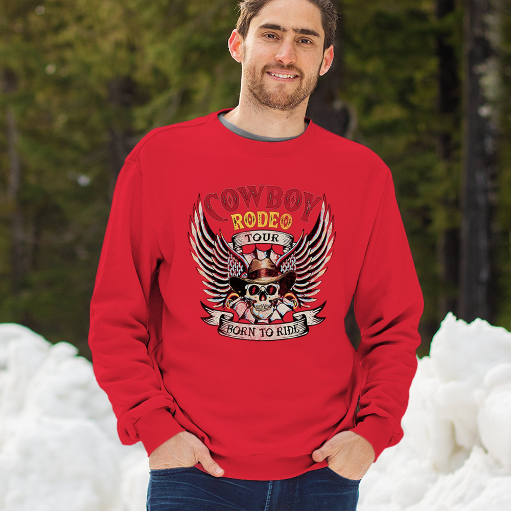 Cowboy Rodeo Tour “Born to Ride†design with skull, wings, and western grit. Built for riders, rebels, and rodeo fans who live wild.