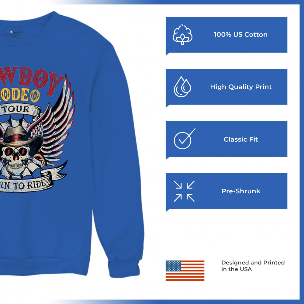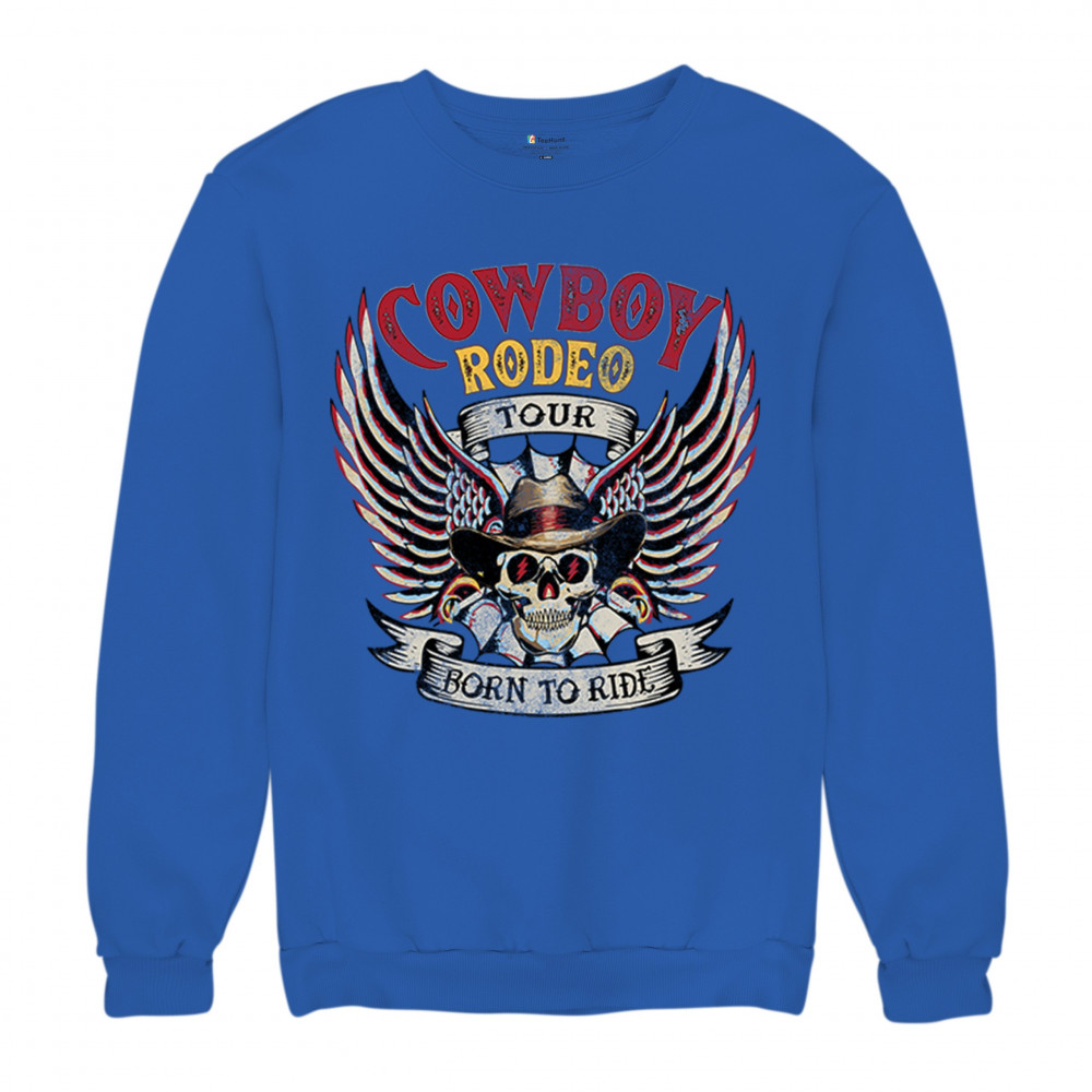 Cowboy Rodeo Tour “Born to Ride†design with skull, wings, and western grit. Built for riders, rebels, and rodeo fans who live wild.
