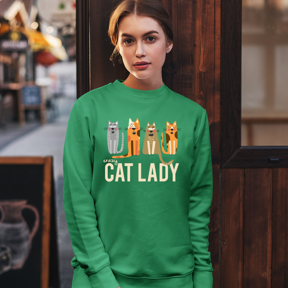 CRAZY CAT LADY sweatshirt mother's day cat lover kitten kitty crewneck green