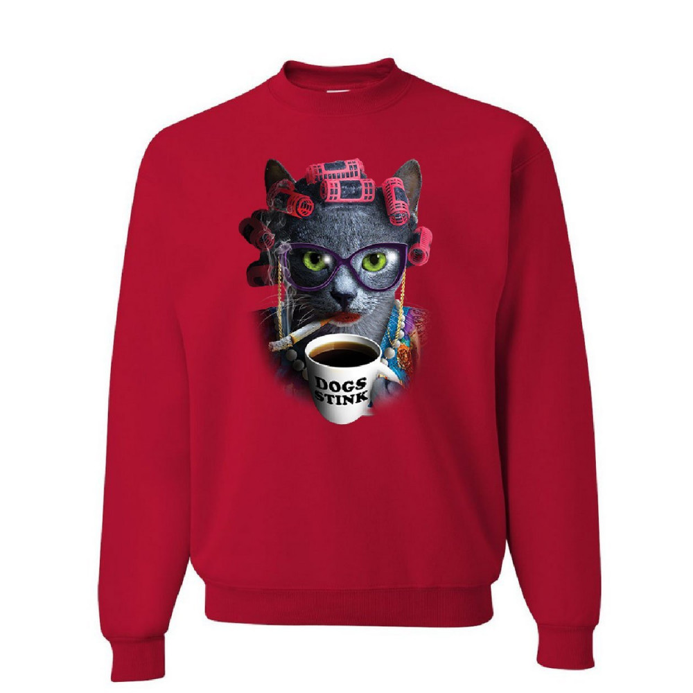 CRAZY OLD CAT LADY sweatshirt dogs stink funny kitten cat lover pet sweater red