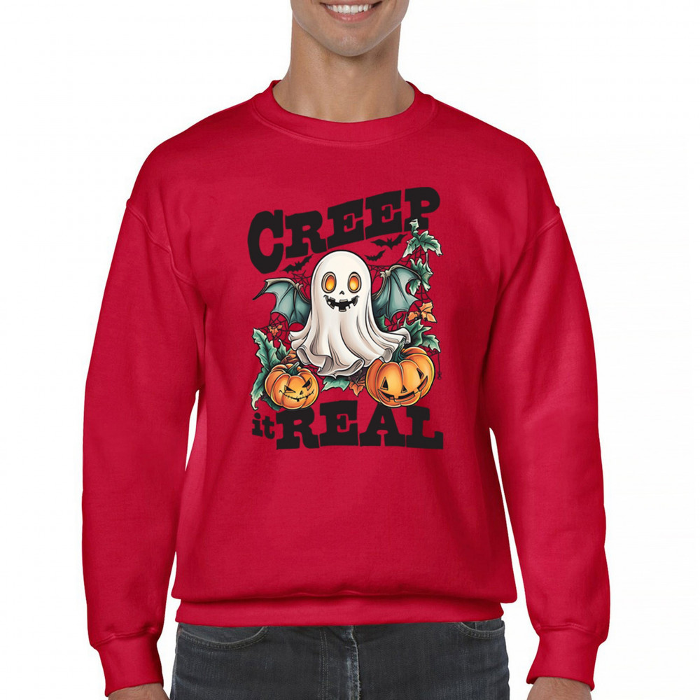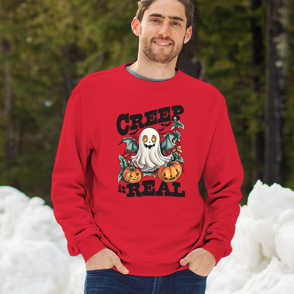 Celebrate Halloween with this playful "Creep It Real" ghost design, perfect for fall activities, pumpkin patches, and spooky parties!