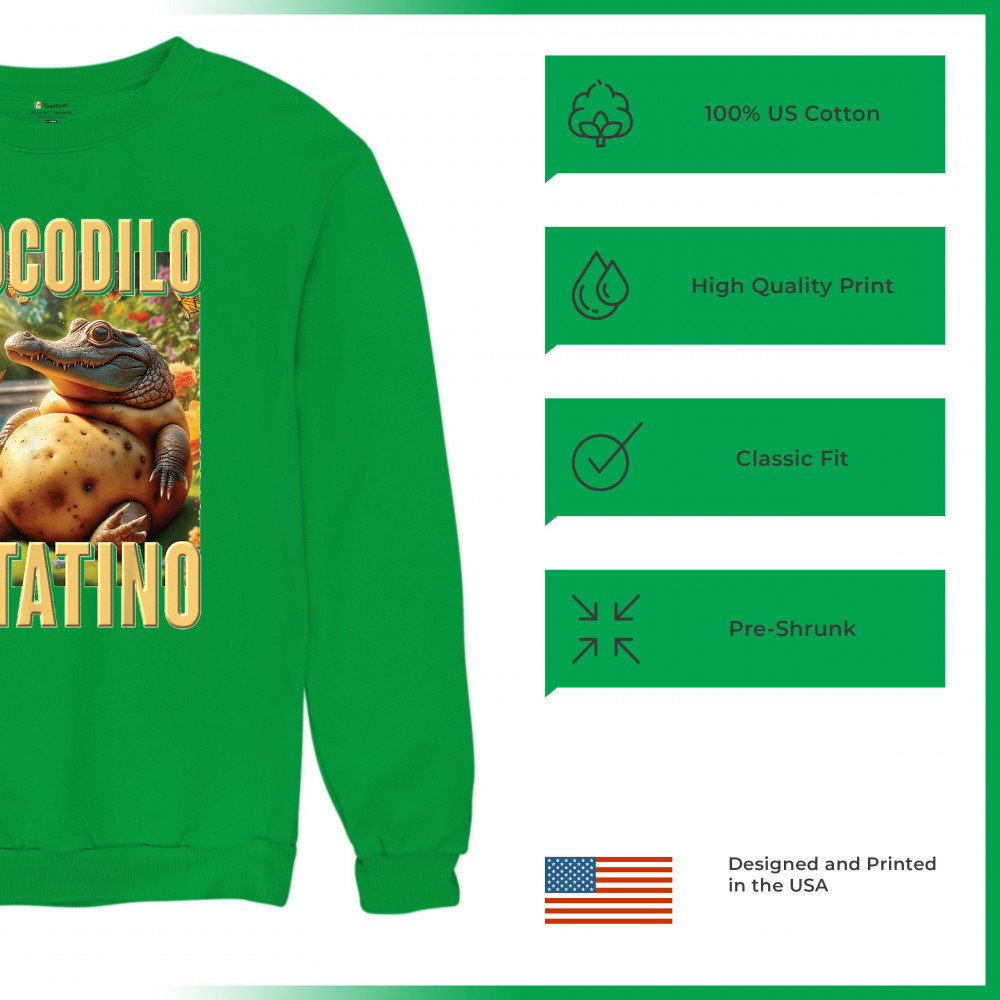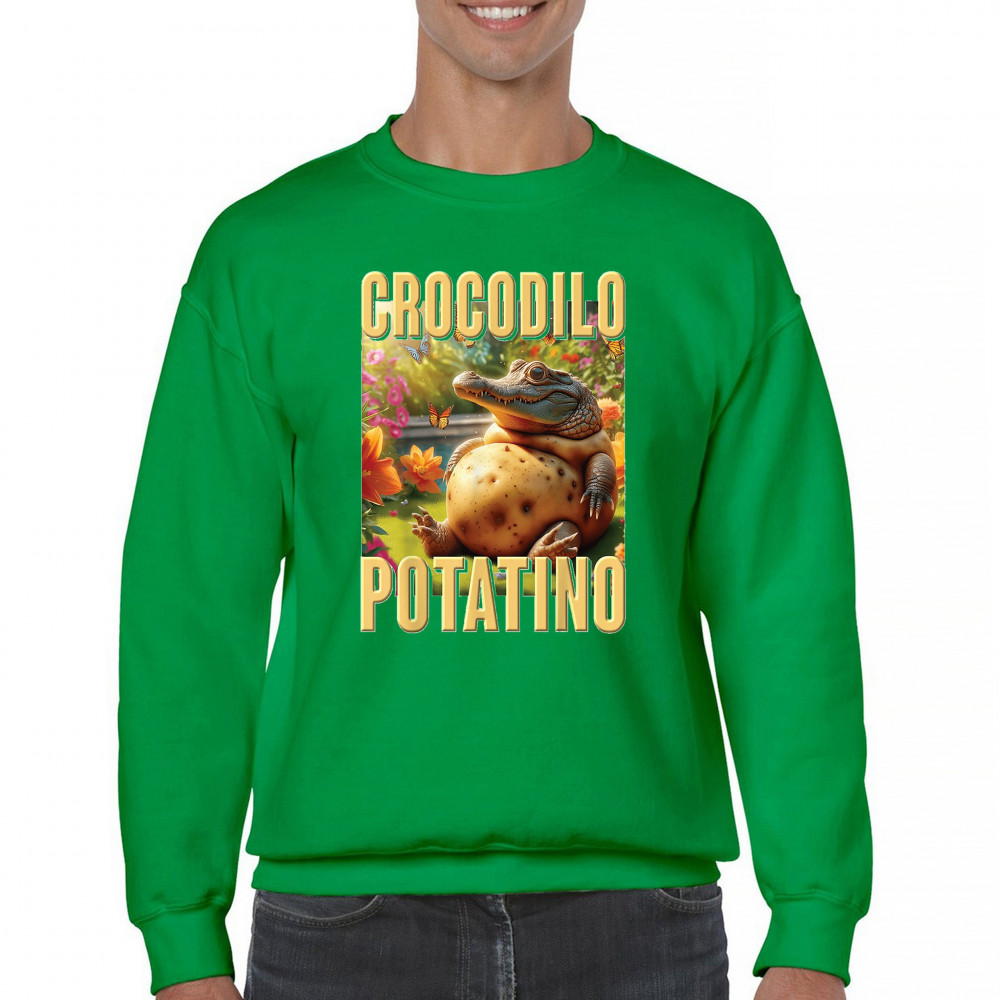 Crocodilo Potatino fuses cursed-core humor, animal mashup memes, TikTok absurdity, weirdcore aesthetic, and Gen Z viral fashion.