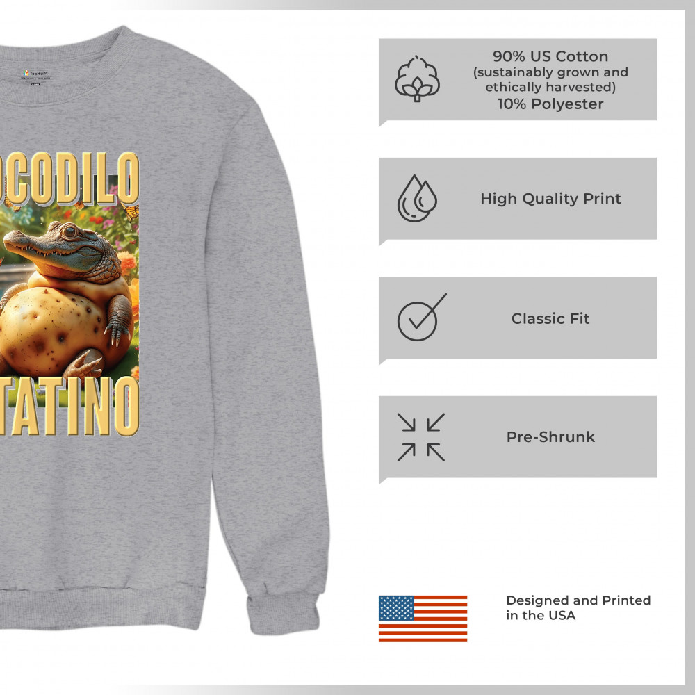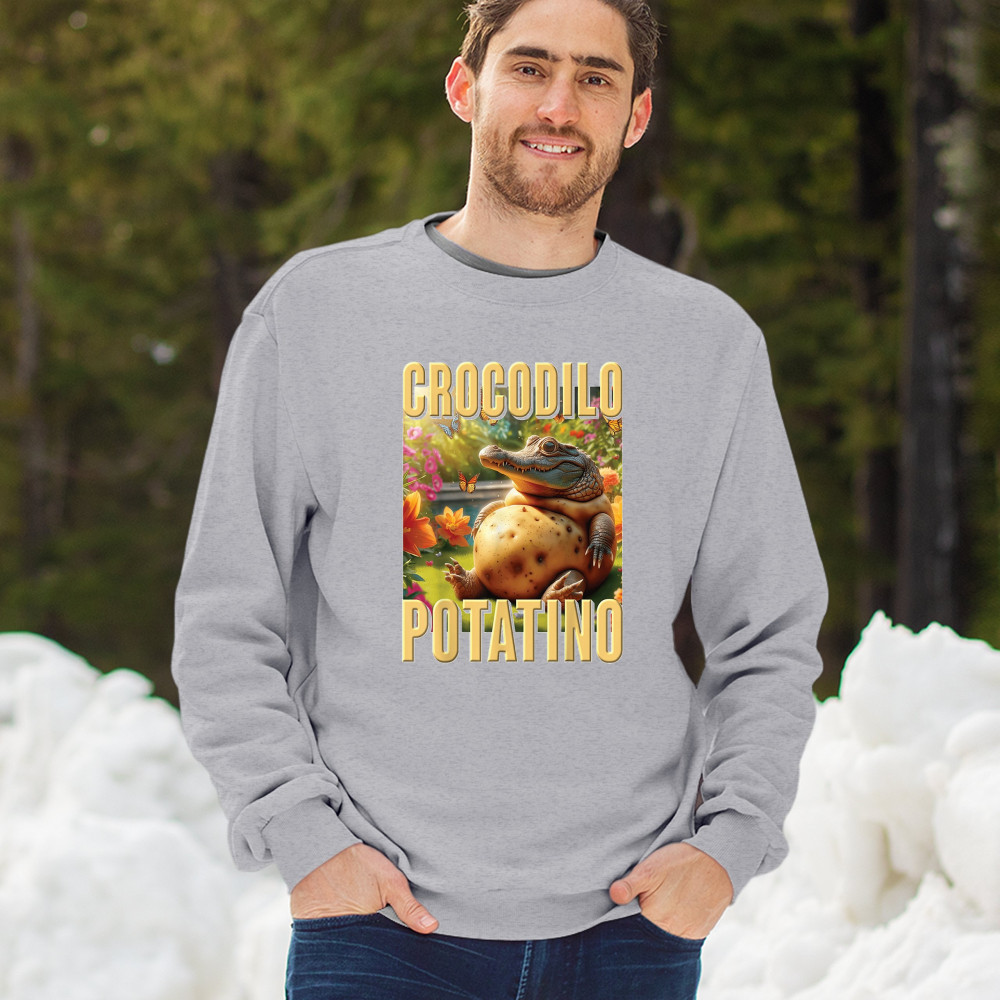 Crocodilo Potatino fuses cursed-core humor, animal mashup memes, TikTok absurdity, weirdcore aesthetic, and Gen Z viral fashion.