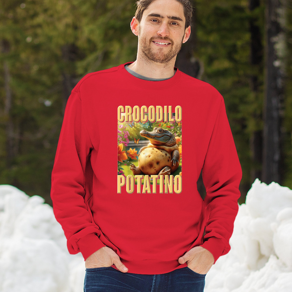 Crocodilo Potatino fuses cursed-core humor, animal mashup memes, TikTok absurdity, weirdcore aesthetic, and Gen Z viral fashion.
