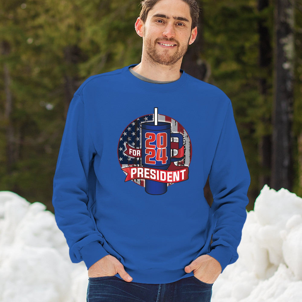 Celebrate the 2024 election season with a touch of humor with this clever design that parodies the popular water bottle craze. Perfect for those who enjoy political satire and want to make a statement, this design is ideal for casual wear, political rallies, and social gatherings. Show off your witty side with this playful and eye-catching graphic, and get ready to spark conversations and laughter wherever you go.