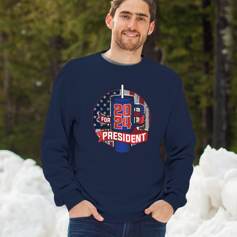 Celebrate the 2024 election season with a touch of humor with this clever design that parodies the popular water bottle craze. Perfect for those who enjoy political satire and want to make a statement, this design is ideal for casual wear, political rallies, and social gatherings. Show off your witty side with this playful and eye-catching graphic, and get ready to spark conversations and laughter wherever you go.