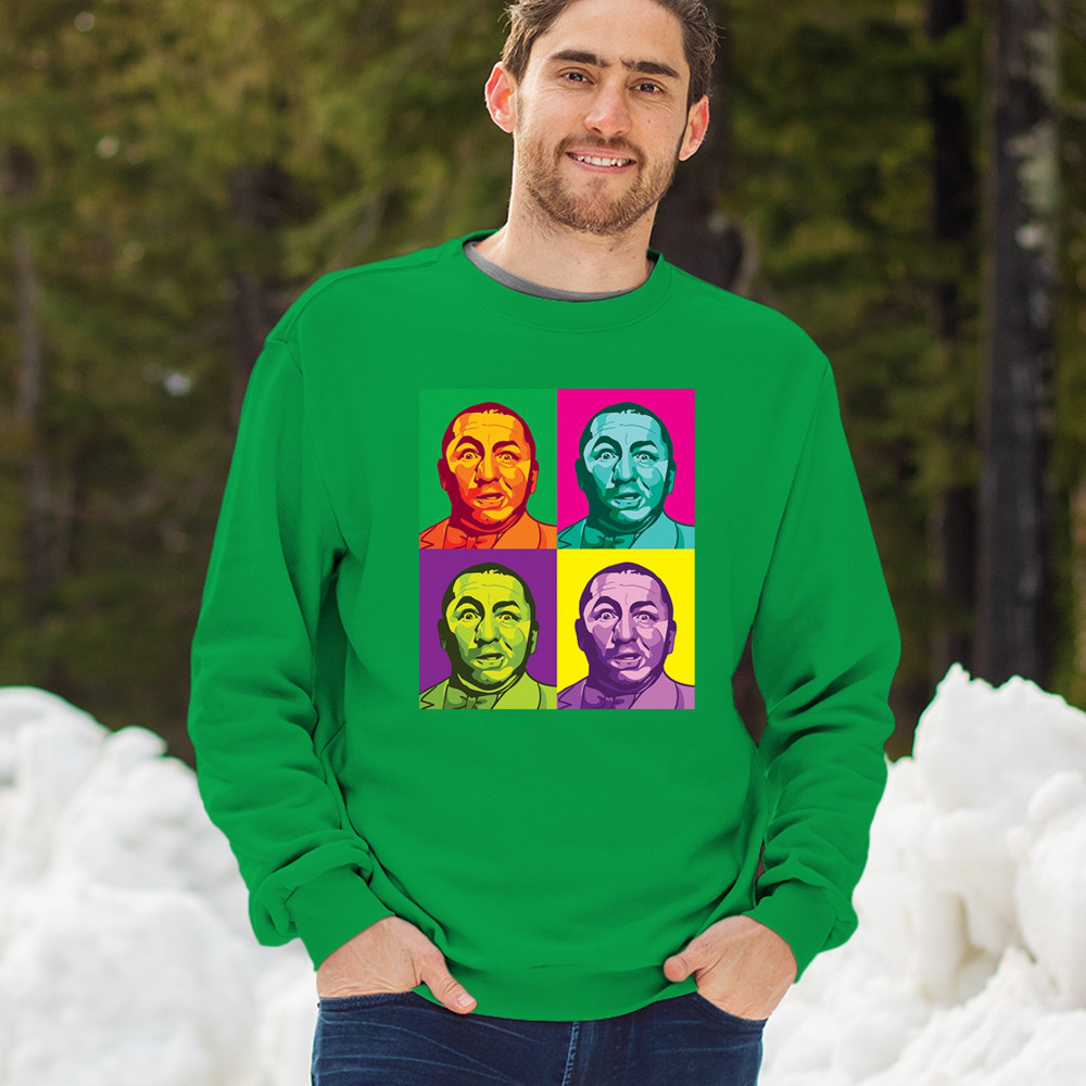 Introducing our dazzling pop art collection, headlined by the inimitable Curly of the Three Stooges! With a quartet of vivid hues, this T-shirt is a contemporary twist on classic humor. It's a standout piece for any fan's collection, capturing the timeless expression of Curly in a modern art style that's sure to turn heads and spark smiles.