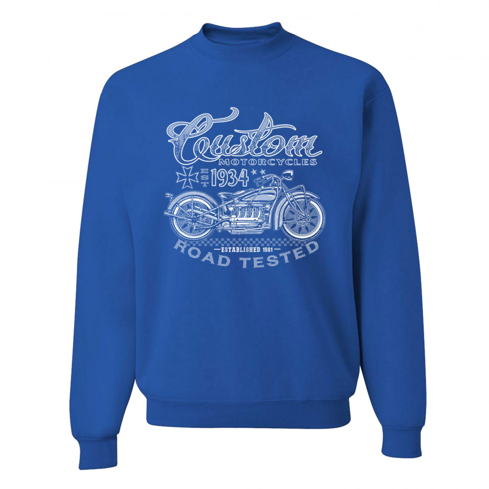CUSTOM MOTORCYCLES ROAD TESTED sweatshirt bobber biker gang mc crewneck royal blue
