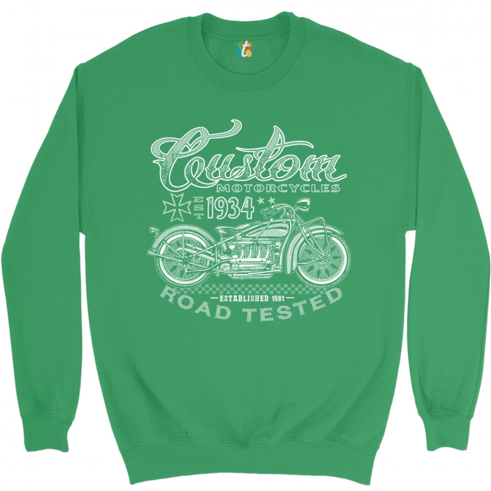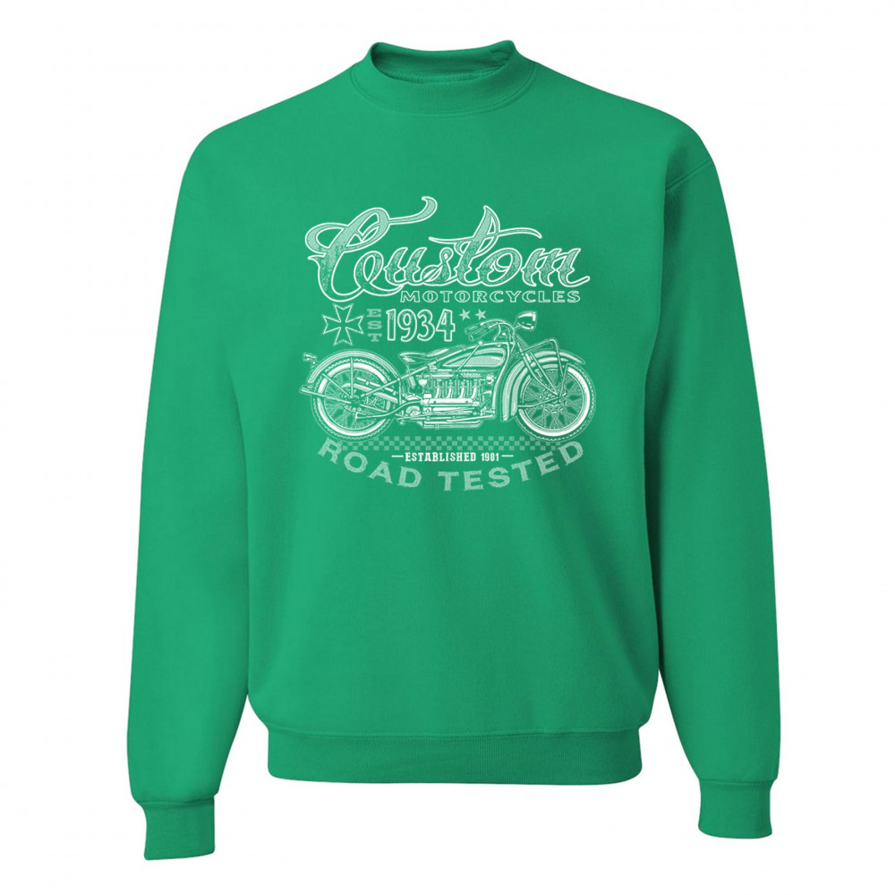CUSTOM MOTORCYCLES ROAD TESTED sweatshirt bobber biker gang mc crewneck green