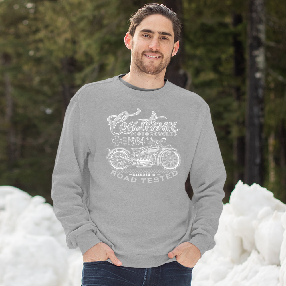 CUSTOM MOTORCYCLES ROAD TESTED sweatshirt bobber biker gang mc crewneck gray